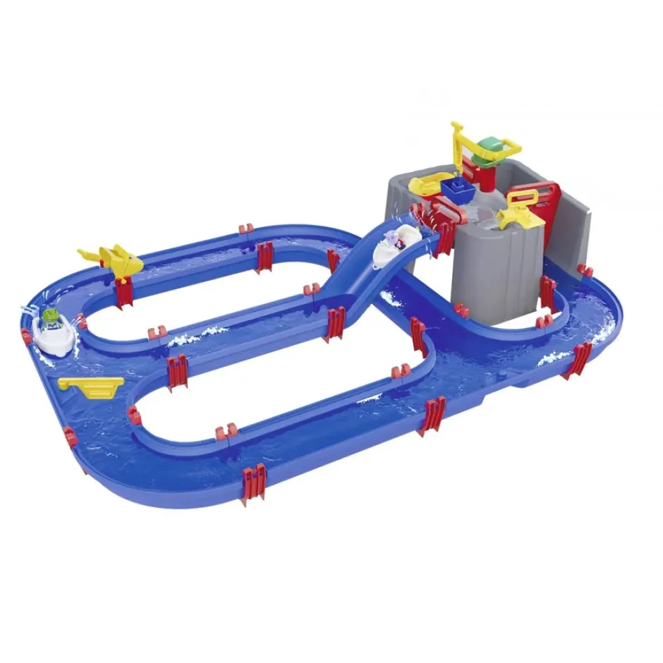 AquaPlay Harbour med vandreservoir og pumpe. 63 dele inklusive 3 både og 2 figurer.