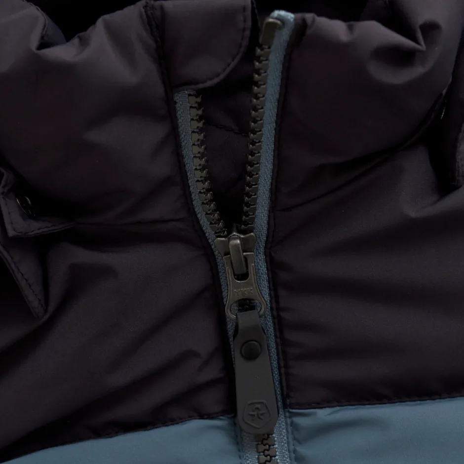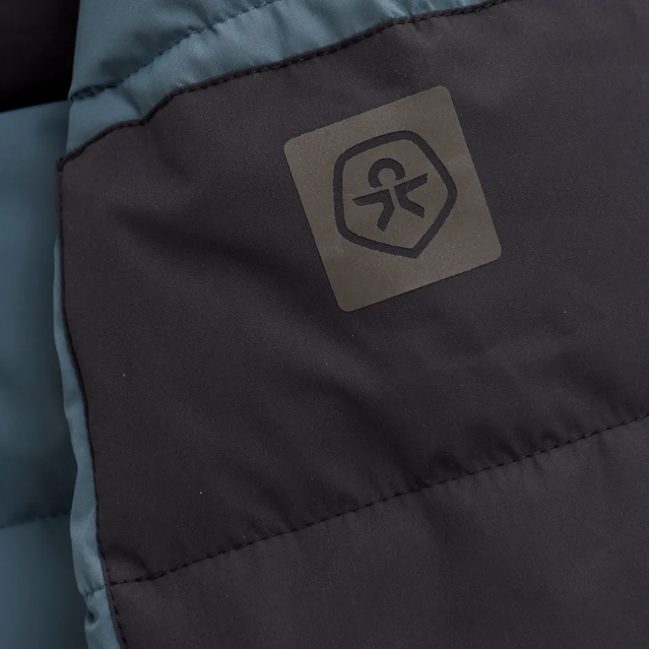 Indvendigt findes et navneskilt, og jakken er fremstillet i genanvendt materiale. Den er imprægneret med miljøvenlige BIONIC FINISH® ECO og GRS-certificeret med over 50 % genanvendt indhold – et ansvarligt og funktionelt valg til vinteren.