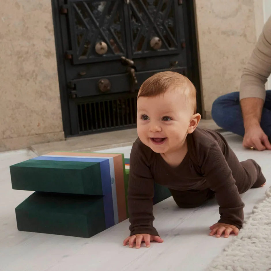 bObles Krokodille er en favorit for mange – og det er der virkelig mange gode grunde til. Baby, tumling og barn vil elske det motorisk udfordrende krybdyr i rigtig mange år, når den udvikler sig fra sliske til stylter. Der er næppe noget legetøj, der kan konkurrere med en bObles Krokodille, når det gælder balance, koordination og store grin. For den helt lille baby kan Krokodille vendes om på ryggen og bruges som sliske. Herfra kan mor og far nyde nærværet med deres lille ny, når baby ligger på ryggen og kigger op. Læg en bObles Kylling under Krokodille og pludselig har du den sjoveste baby-vippe. For de kravlende babyer er trinene på Krokodille den perfekte første trappe, hvor der også kan trænes faldrefleks. De sjove aktiviteter stopper dog ikke her. Trappen bliver kun endnu mere underholdende, når tumlingen er kommet op at gå. Sæt den for enden af sengen som hjælp til selv at komme op – det styrker barnets selvtillid at mestre den slags discipliner, ligesom bObles Krokodille pynter i ethvert børneværelse med sit ikoniske og sjove design. Og når barnet bliver rigtig modigt, kan to Krokodiller blive til stylter eller en lille bænk. De naturlige farver er omhyggeligt udvalgt, for at skabe rolige, sanselige og inspirerende omgivelser for barnet at lege i, samtidig med at farverne, såvel som tumlemøblerne er tidløse og kan holde til mere end én sæson.