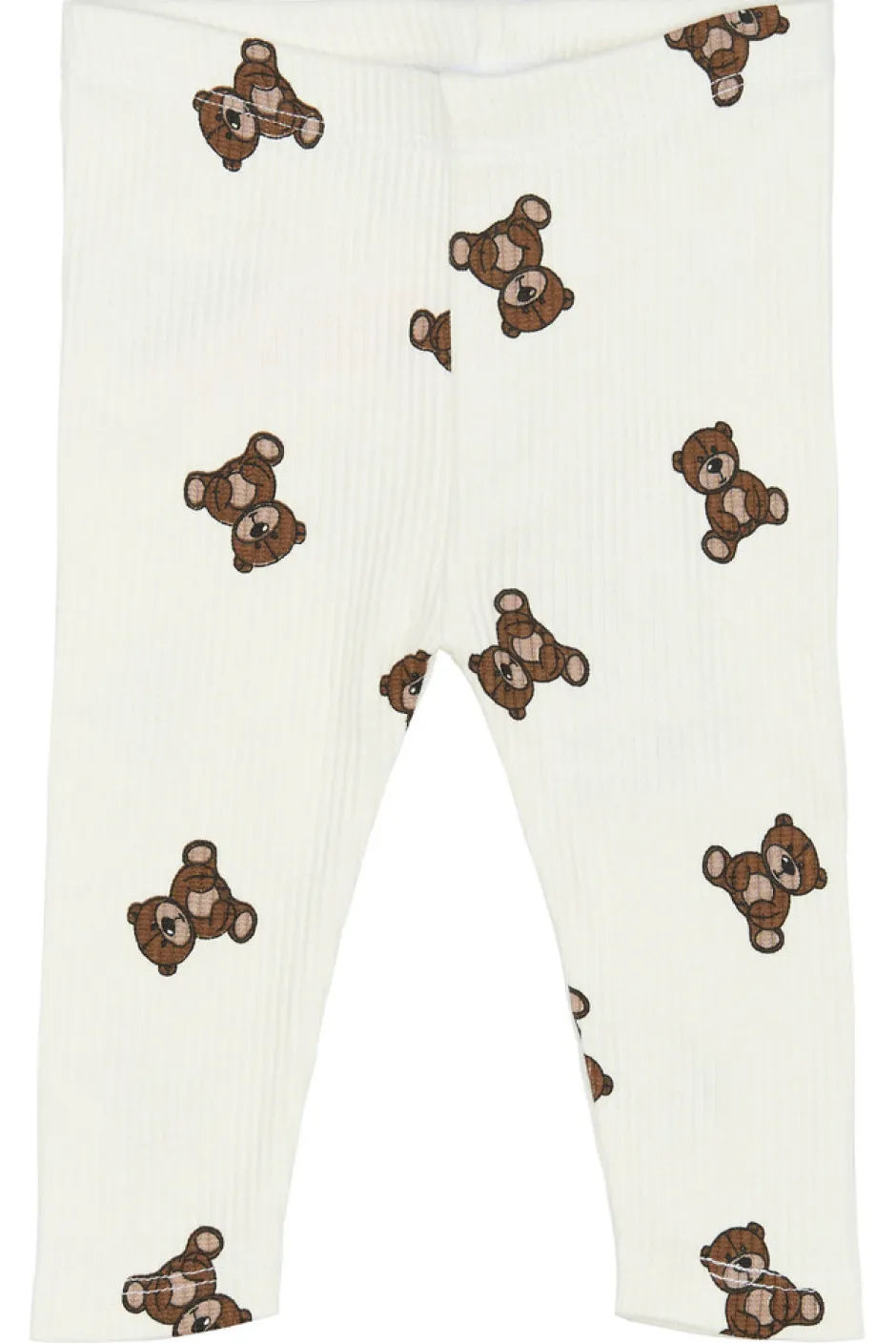 Ribstrikkede baby leggings med et sødt mønster af bamser. Disse leggings fra THE NEW siblings er nemme at style med forskellige toppe.