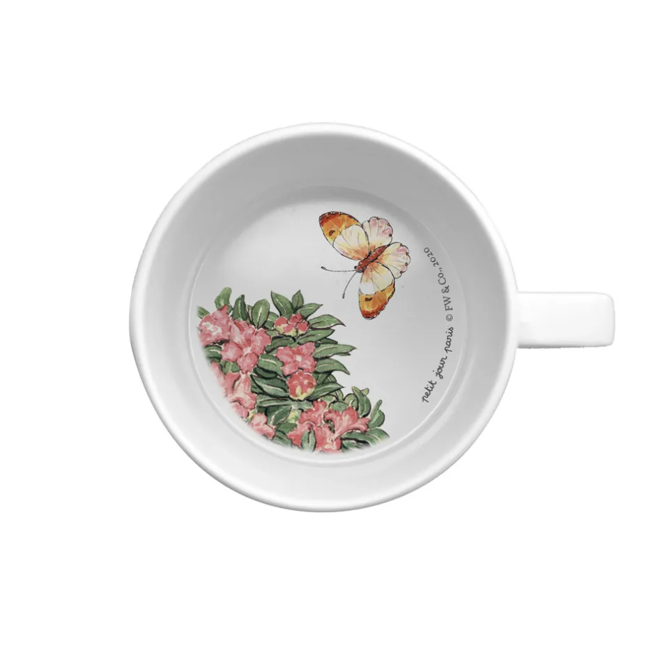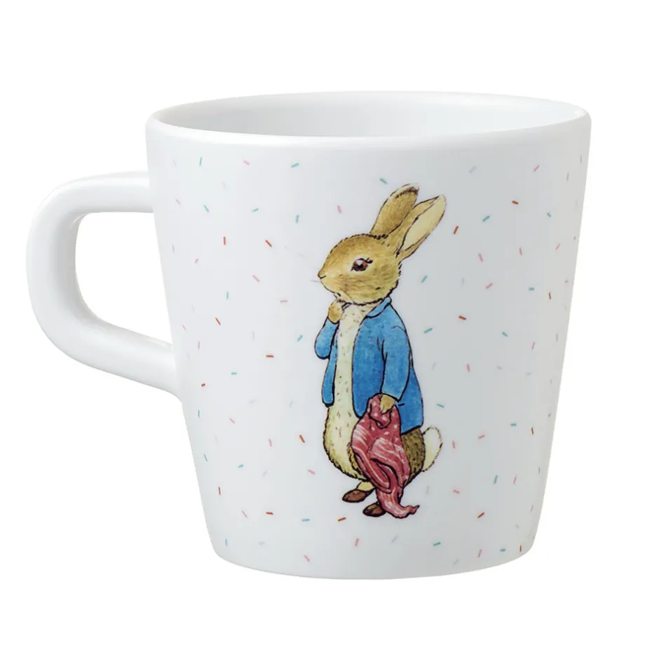 Et flot krus med hank med motiver fra Peter Kanins søde verden. Et praktisk krus, når barnet selv vil holde på koppen og drikke.