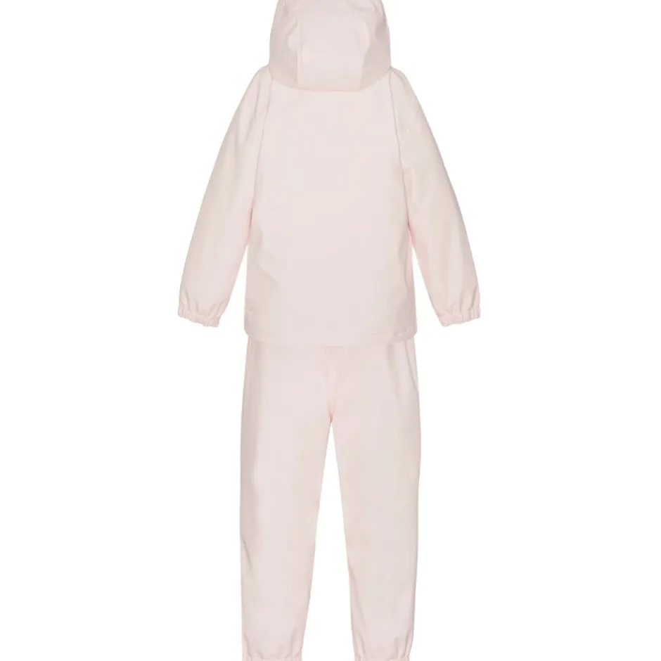 Vores PU-regnsæt er blødt og vandtæt med svejsede sømme. Det er velegnet til leg i vand og regn. PU-belægningen, der er på overfladen, kan ridses og få huller, hvis den gnides mod sand og sten (hårde overflader), eller hvis den bliver revet af grene eller skarpe genstande.