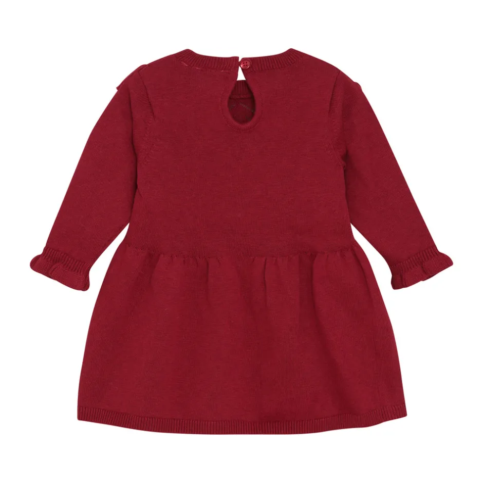 Elegant kjole med lange ærmer, smukke flæsedetaljer og elastik ved håndleddene. Den har en behagelig og flatterende pasform samt knaplukning i ryggen. Et ideelt valg til særlige anledninger.