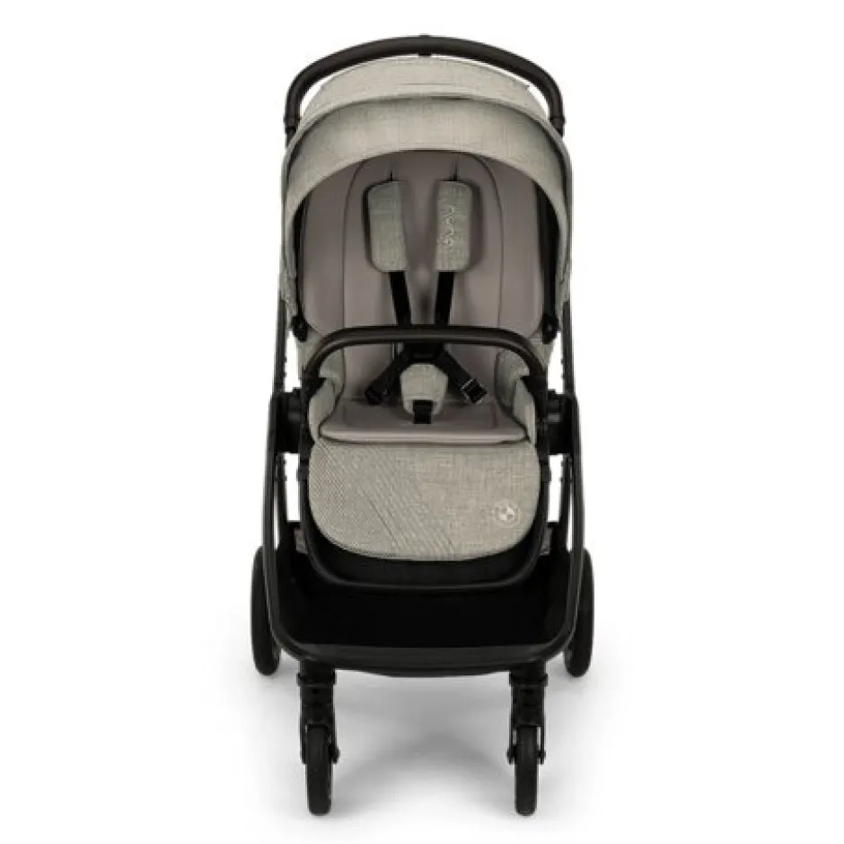Triv Next: Klapvognen har en elegant farve med BMW Trinity mønster og sorte kunstlæderdetaljer, der giver et sofistikeret udseende. Med en vægt på kun 8,72 kg. er TRIV™ Next nem at bære og håndtere, hvilket gør den ideel til rejser og daglige ture. Denne klapvogn er perfekt for forældre, der ønsker en kombination af luksus, komfort og funktionalitet til deres daglige eventyr med deres lille én.