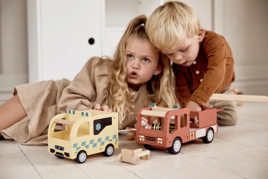 Giv dit barn muligheden for at skabe spændende redningsmissioner og lære om hjælpearbejde med vores træ-ambulance til børn – en fantastisk gave til små helte i træning.