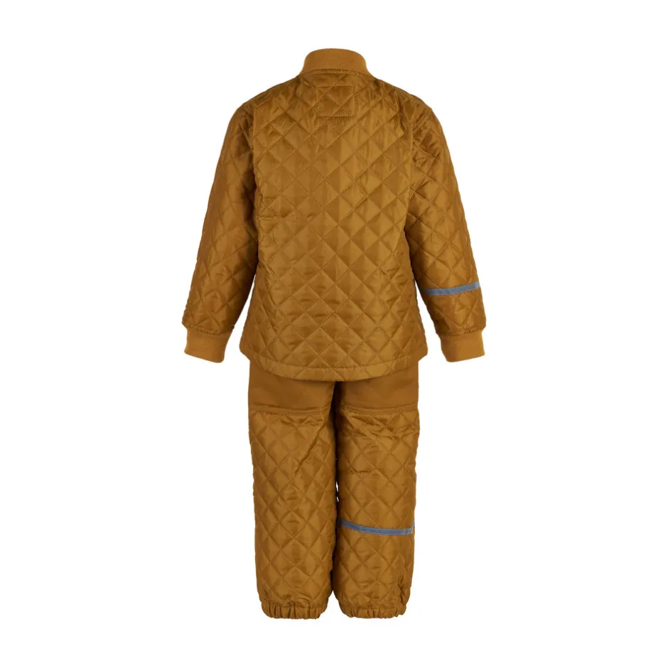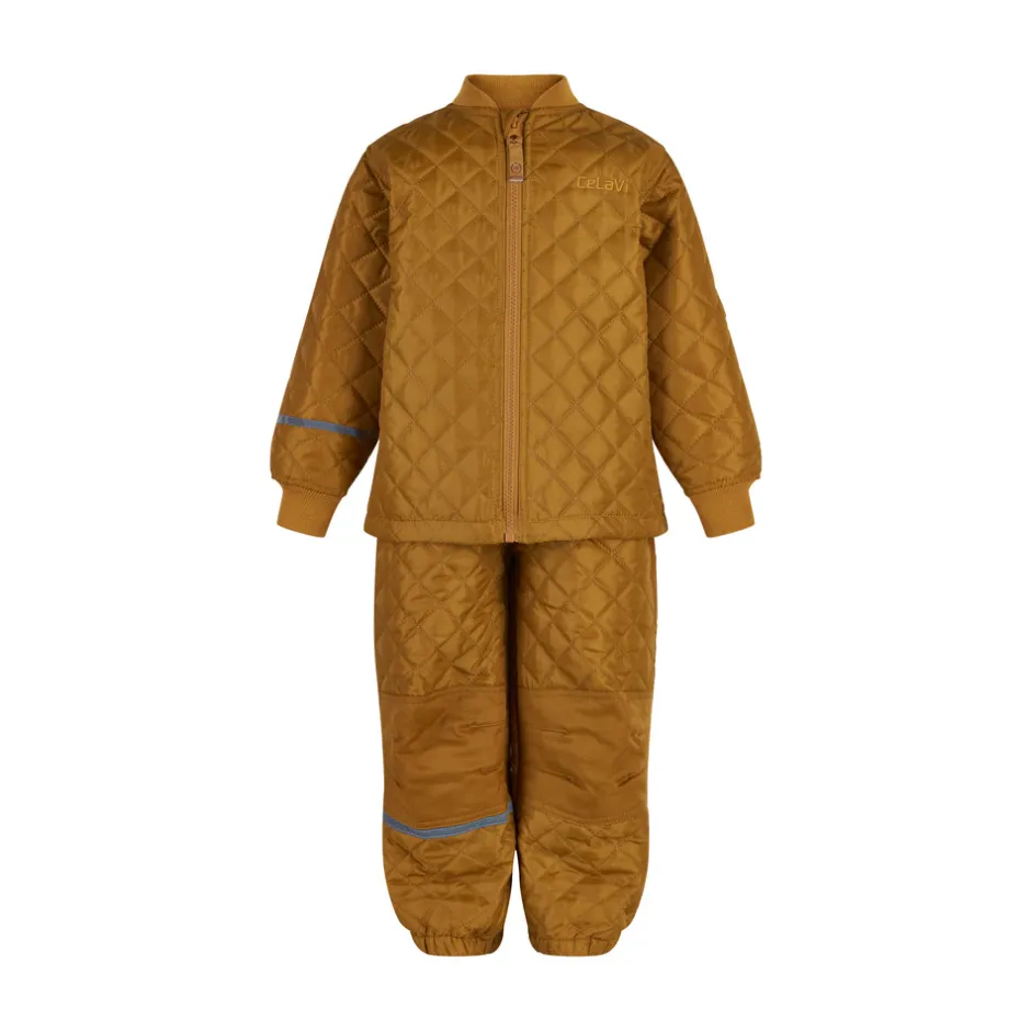 Til dage, hvor det er for varmt til vintertøj og for koldt i en tynd sommerjakke, er termotøj fra CeLaVi perfekt. Kan bruges alene eller indenunder regntøjet for at give lidt ekstra varme. Termotøjet er ikke vandtæt, men på knæ og bagdelen er der tilføjet et lag Oxford nylon, som er imprægneret med en gennemsigtig PU-coating på bagsiden, der gør disse udsatte områder mere slidstærke og vandafvisende.