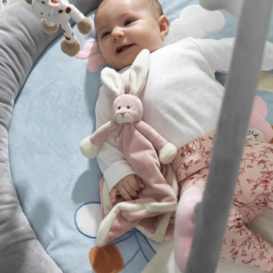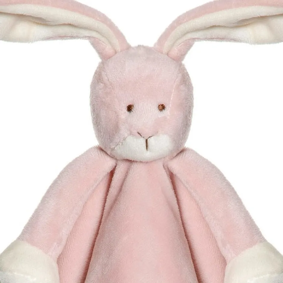 Nusseklud – en verden af kærlighed. Denne bløde nusseklud er formet som en sød kanin. Den har et sødt hoved med lange ører og bløde arme. Den har en fin kant i samme lyse farve som potterne. En herlig ven at have med på tur, kramme med når man er ked af det, og med i seng når det er sove tid. Nusseklude er en god følgesvend til små børn. Kan maskinvaskes ved 40 grader. Børnesikker og testet til børn fra 0 måneder. Måler 35 x 35 cm