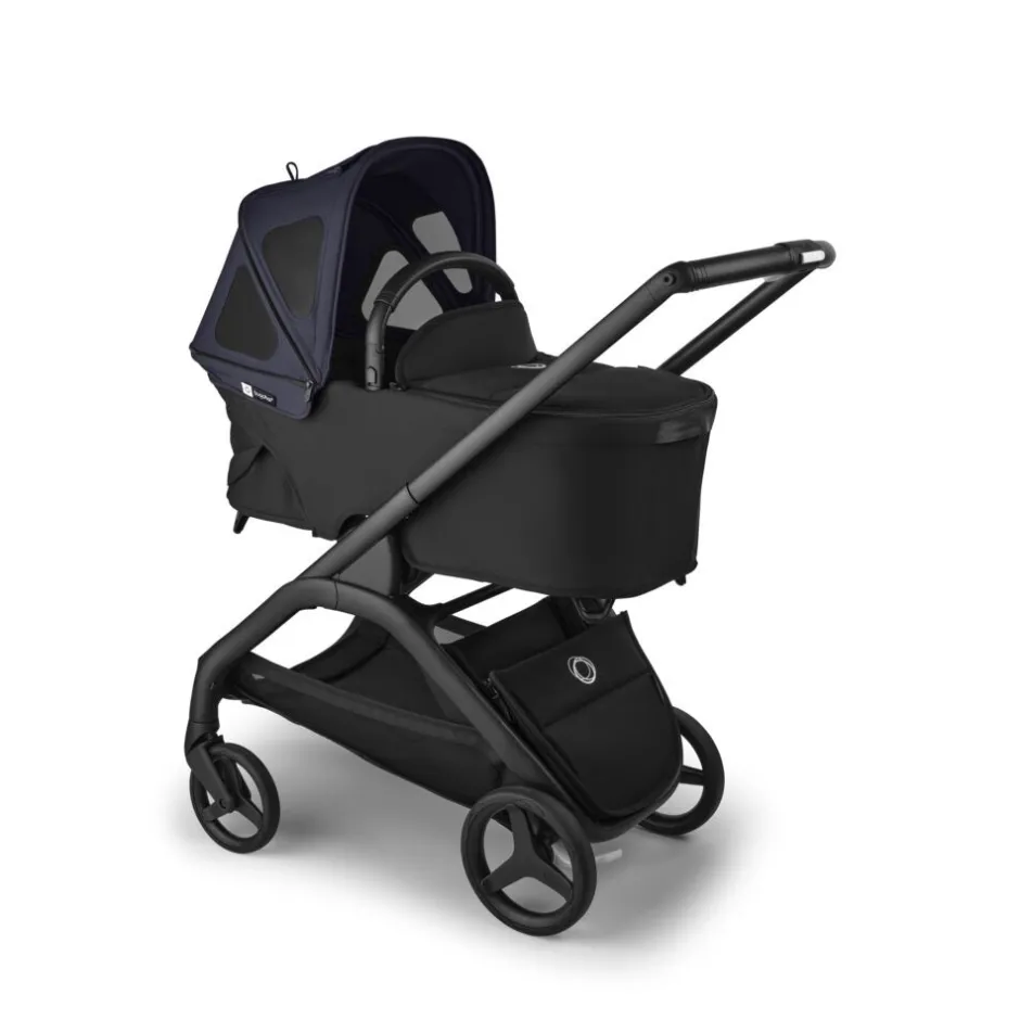 Sæt din egen personlige stil på din Bugaboo Dragonfly ved at tilkøbe en ekstra kaleche. Kalechen tilbyder udtrækkelig solsejl med UPF 50+ for enestående beskyttelse mod sol og vind, eksklusive mesh-panelvinduer (UPF 3+) til at lukke frisk luft ind, et pop-out visir for endnu mere beskyttelse mod vejret og et peak-a-boo-vindue for at holde øje med dit barn under gåture. Der medfølger et integreret myggenet til beskyttelse fra hoved til tå. Kaleche stoffet kan maskinvaskes ved 30°c. Se altid vaskeetiketten for de nøjagtige instruktioner.
