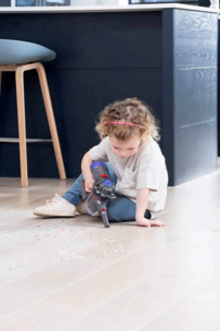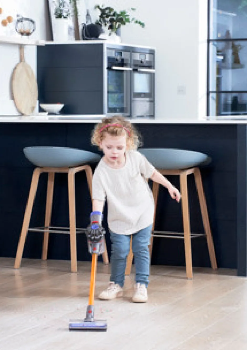 Denne legetøjsstøvsuger efterligner den rigtige dyson-model ned til mindste detalje og sikrer, at de små kan komme så tæt på en realistisk oplevelse som muligt.