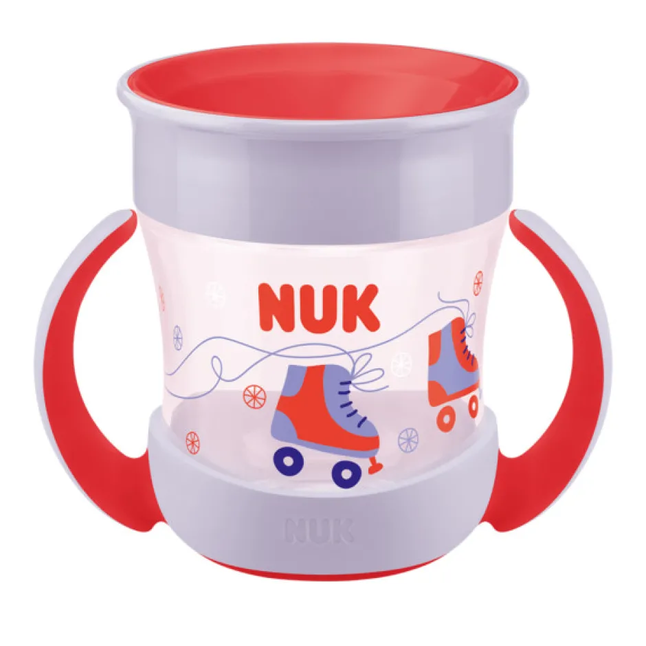 NUK Mini Magic Cup har et innovativt design, der gør at barnet kan drikke af den fra alle sider. Præcis som af et almindeligt glas, uden at spilde. De ergonomiske håndtag er udviklet for at passe barnets små hænder.