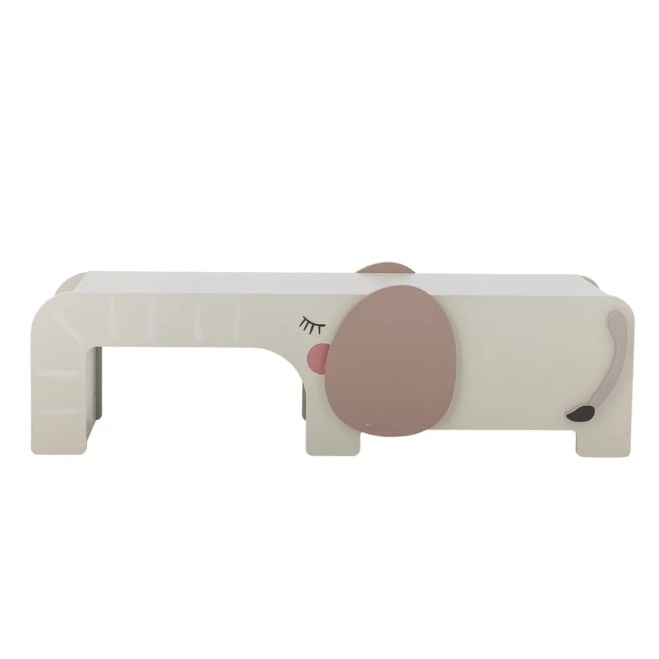Ferdinand Bænken fra Bloomingville MINI forestiller en sød elefant og er lavet af FSC-certificeret MDF. Den charmerende form og de åbne hylder gør bænken til en hyggelig og praktisk detalje på børneværelset, hvor der også er plads til opbevaring under sædet.