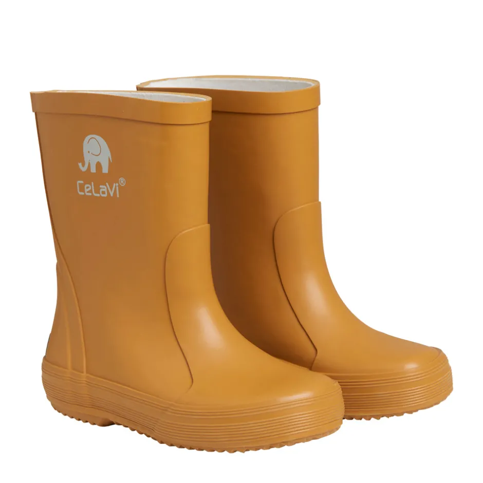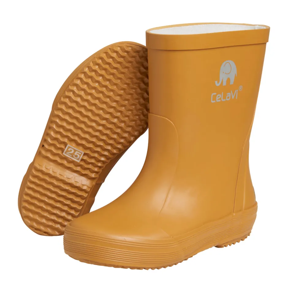 Kvalitetsgummistøvler fra CeLaVi. Støvlerne er håndlavet i lækkert naturgummi, og de har CeLaVi reflekslogo samt en refleksstribe ved hælen. Fås i flere farvervarianter, der matcher CeLaVi’s regntøj. Da gummistøvler til børn ofte bliver brugt flere timer ad gangen, er det vigtig for CeLaVi, at de er komfortable og funktionelle. Modellen er smallere i hælen, for at børnene bedre vil kunne bevæge sig, når de går, løber og leger. For at støvlen sidder optimalt på barnets fod, skal den som tommelfingerregel være fodens længde plus en finger (1-1,5 cm), så der er plads til storetåen og en tyk strømpe.