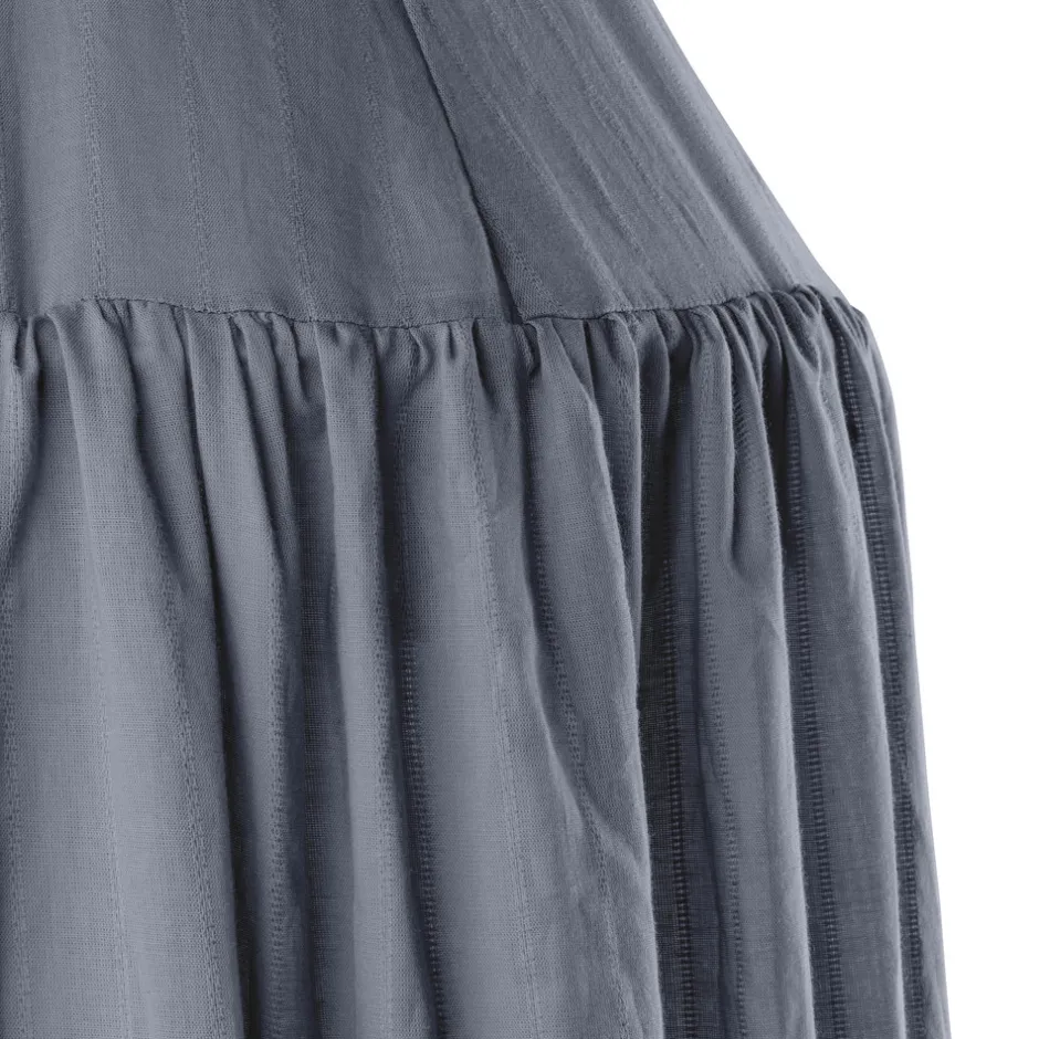 Smuk og enkel sengehimmel der tilføjer et elegant og stilfuldt touch til børneværelset. Sengehimlen er designet i Danmark og kan bruges over babysengen for at skabe en tryg og beroligende atmosfære omkring sovemiljøet. Vågner dit barn tidligt, f.eks. pga. morgensol, så kan en sengehimmel også bidrage til at gøre sengeomgivelserne lidt mørkere. Det smukke stof er monteret på en metalbøjle med et kryds, hvorfra der eksempelvis kan hænges en uro eller drømmefanger.