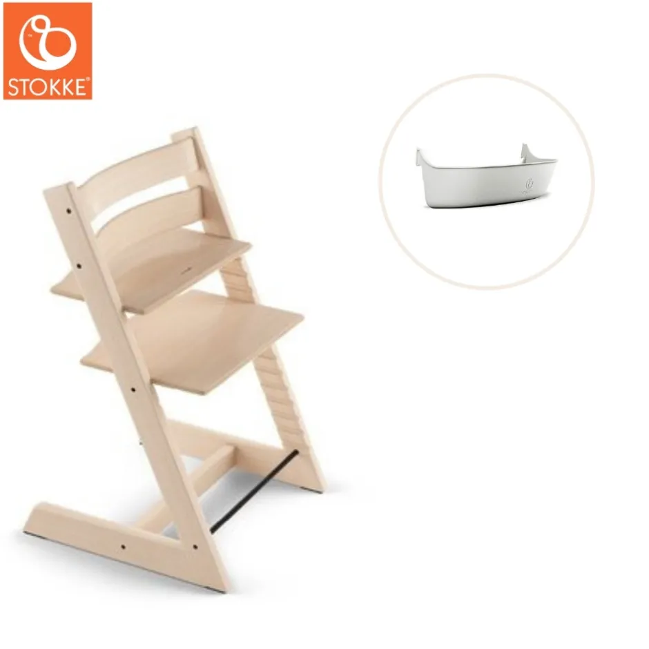 Højstolen: Produceret i dyrket bøg, som er en stærk træsort, der gør produktet stabilt og holdbart, og sikrer en lang levetid. Det er let at tilpasse sidde- og fodplade i både højde og i dybden, i takt med at barnet vokser. Dermed opnås en optimal siddestilling med god bevægelsesfrihed og støtte for både fødder og ryg. Den stabile fodplade giver dit barn sikkerhed og frihed til at bevæge sig på stolen, hvilket stimulerer barnets motoriske udvikling. Fuld fodstøtte sikrer desuden at barnets ben ikke kommer til at sove. Når stolen er justeret korrekt sidder dit barn behageligt og ergonomisk korrekt uanset alder. Med Tripp Trapp® højstolen kommer dit barn til at sidde med ved spisebordet og nyde måltiderne sammen med resten af familien.