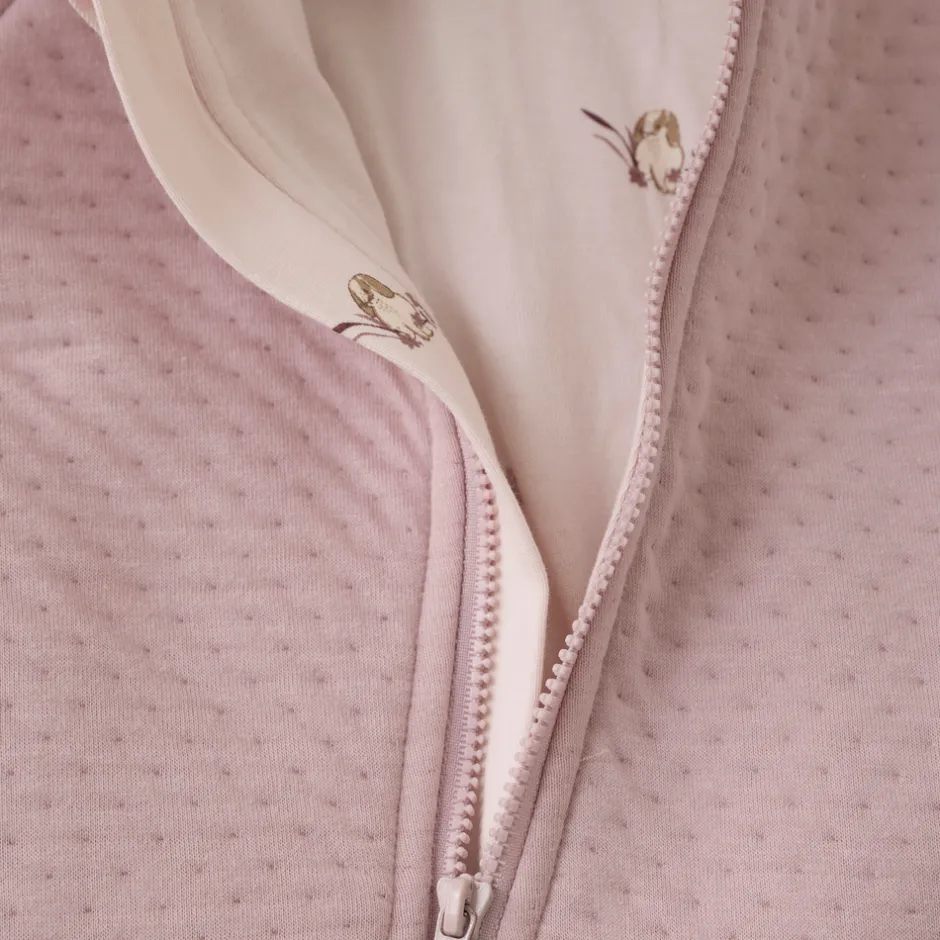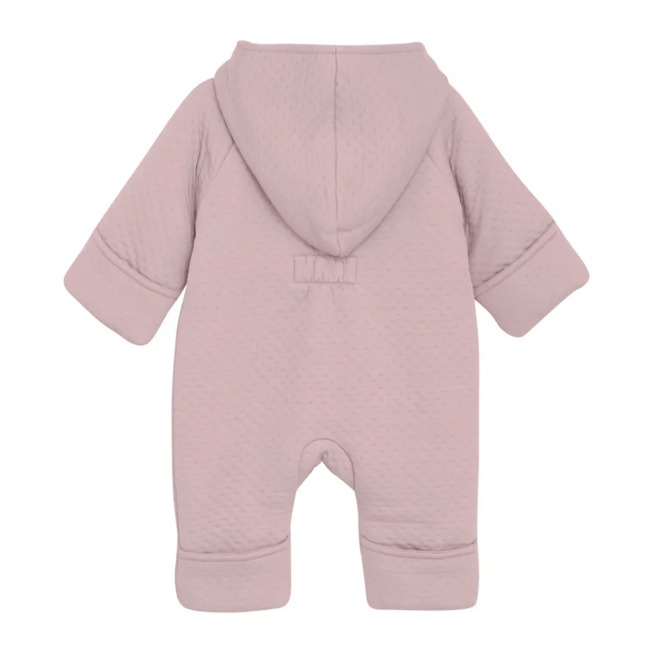 Blød køredragt fra FIXONI i ensfarvet design med sødt printet foer. Dragten har en praktisk lynlås, der går fra midten og skråt ned til højre ben, hvilket gør den nem at tage af og på. Den er designet med fast hætte samt foldbare fødder og luffer, som giver ekstra varme og fleksibilitet.