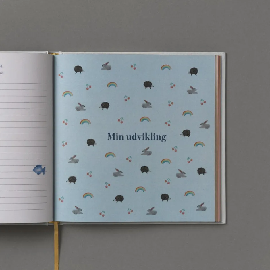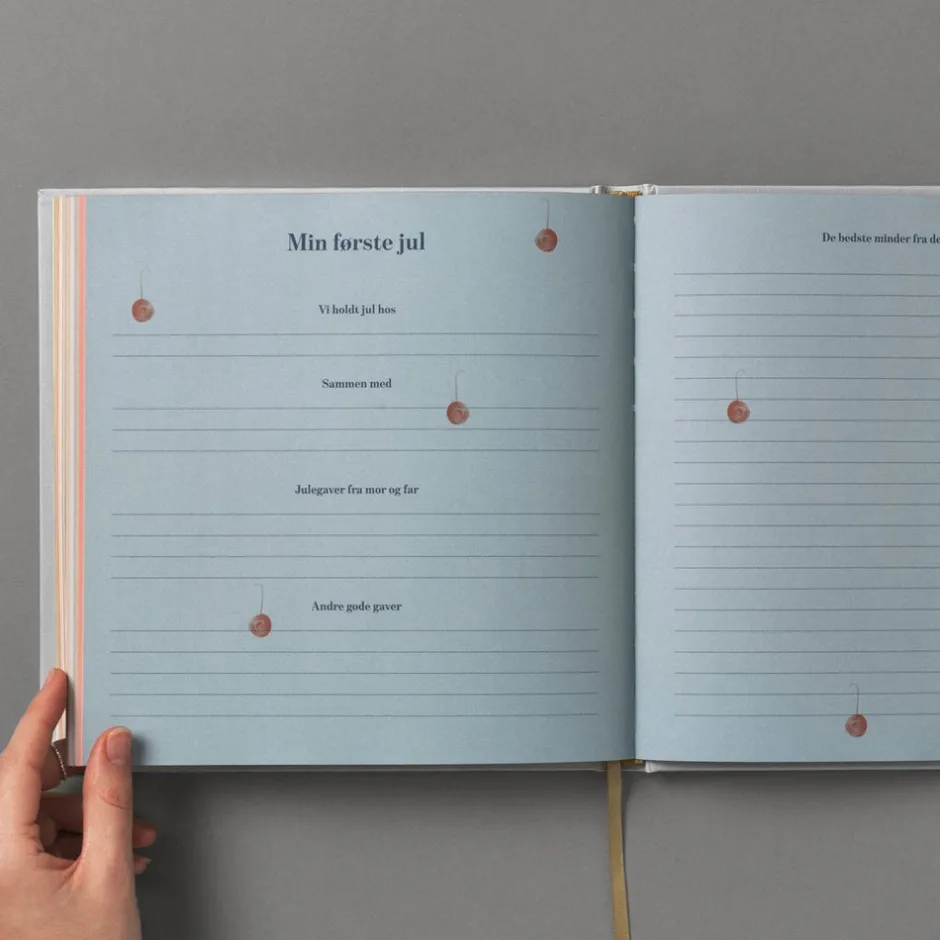 En unik scrapbog hvori forældrene kan dokumentere barnets første tid, lige fra tilblivelsen inde i mors mave og til barnets første ord, yndlingsminder etc. Bogen bliver på denne måde en værdsat skattekiste af historier og billeder der kan tages frem over årenes løb og læses med barnet. Børn elsker nemlig at høre deres egen historie og få sat ord på deres identitet. Bogen er også ideel som dåbsgave.