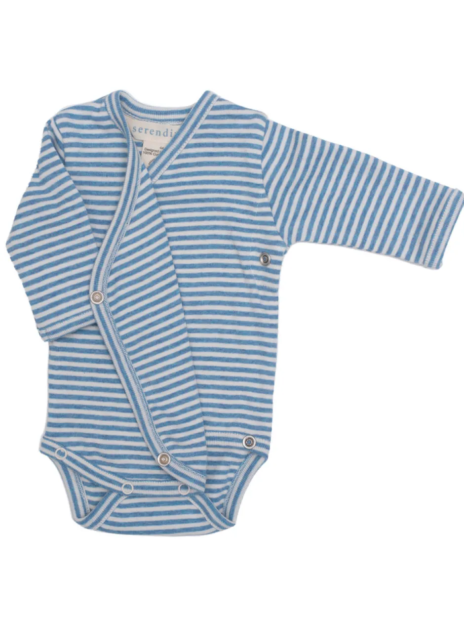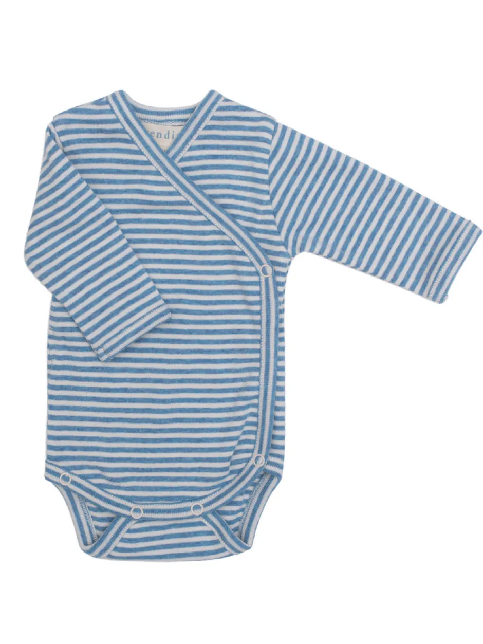 Slå-om body med trykknapper til baby første tid. Syet af blød økologisk bomulds rib.