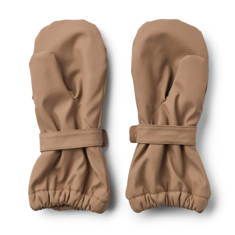 Wheat’s klassiske regnluffer er både behagelige og praktiske at have på. De er vandtætte og har et blødt fleecefoer, som gør dem perfekte til de evigt skiftende sæsoner. Regnlufferne har en justerbar velcrostrop om håndleddet for at sikre, at vanterne bliver på plads. Der er også elastikker ved kanterne, så de kan fastgøres udenpå overtøjets ærmer.