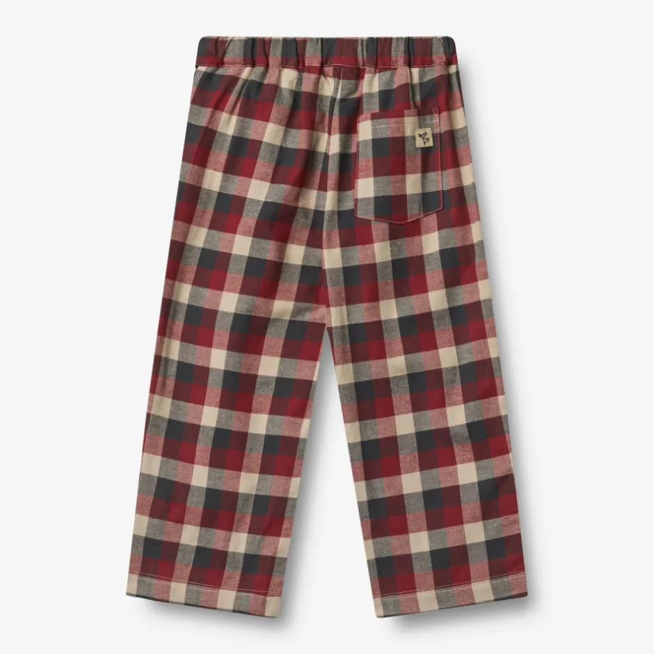 Løstsiddende bukser med tern i blødt, vævet økologisk bomuld til børn. Wheats pæne bukser i blødt vævet materiale er skabt til at sprede magisk julestemning. Med sin løse pasform er de både lette og behagelige for dit barn at have på hele dagen. De er perfekte at style med en fin basis bluse, skjorte eller striktrøje på de køligere dage – klar til både festlige øjeblikke ude og hverdagsmagi hjemme.