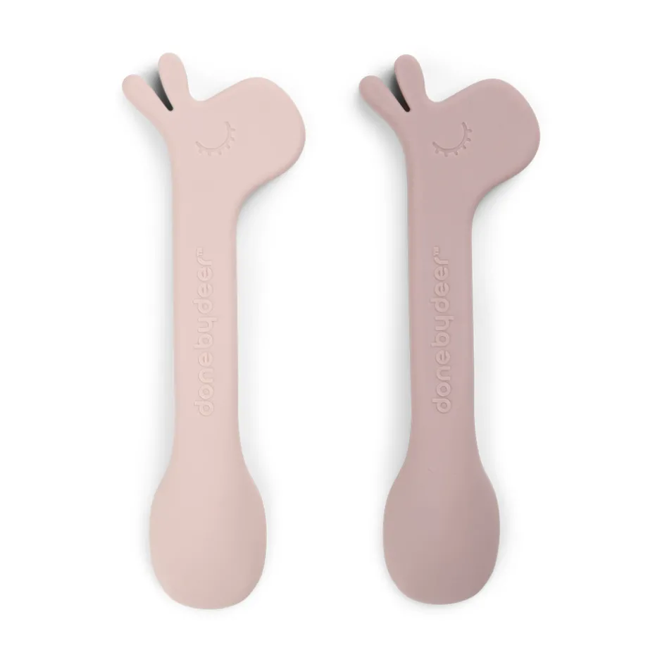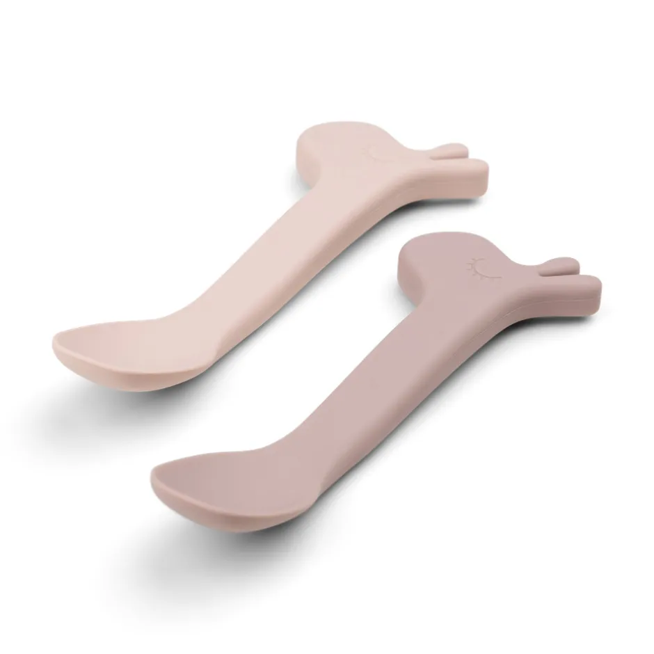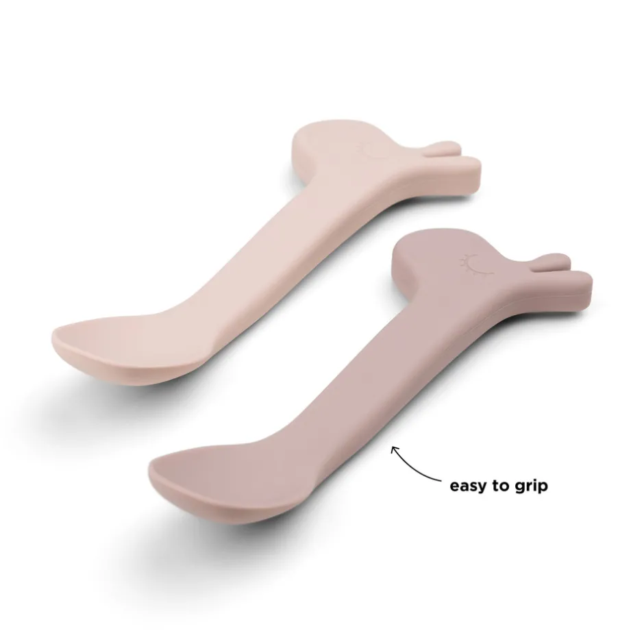 Når dit lille barn spiser selv er det rart at have en god ven ved hånden. Med denne 2-pak af silikoneskeer kan din tumling altid nyde et måltid sammen med Lalee. Skeerne er lavet af silikone, som giver et godt greb for små hænder. Børneskeens størrelse er perfekt for en selvstændig tumling, der er ved at lære at spise selv og for de følgende år. En praktisk 2-pak af skeer i to nuancer af pudderfarve. Perfekt til når der skal introduceres ny mad, eller når favoritterne kommer på bordet.