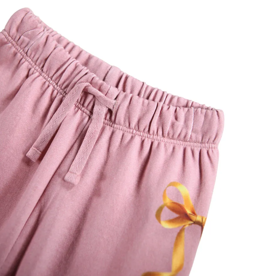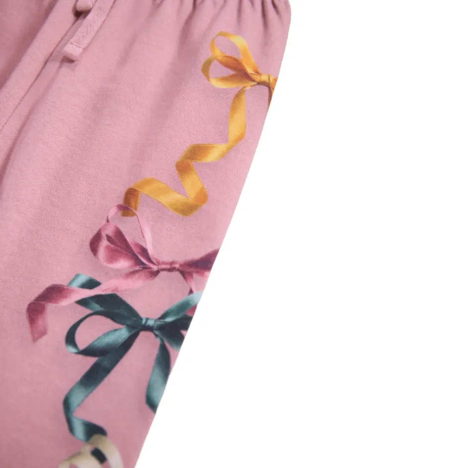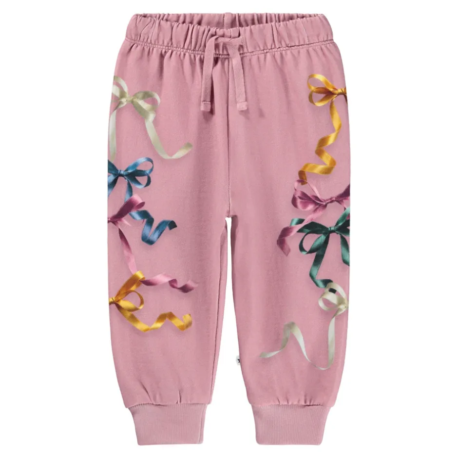 Bukser i økologisk bomuldsjersey med elastik og bindebånd i taljen, der giver en justerbar og behagelig pasform. Ribkanter ved benene og en børstet inderside gør dem ekstra bløde og varme – perfekte til kølige dage.