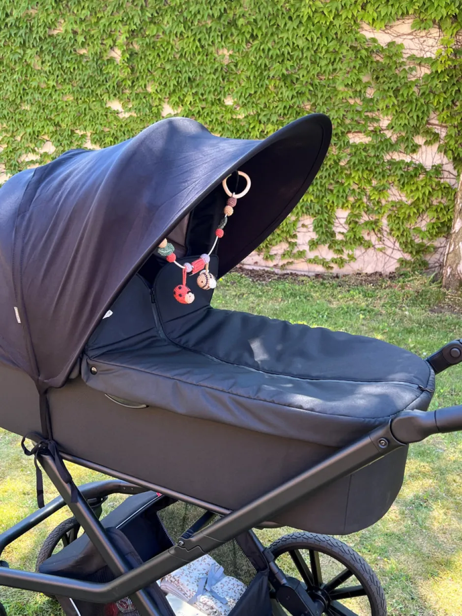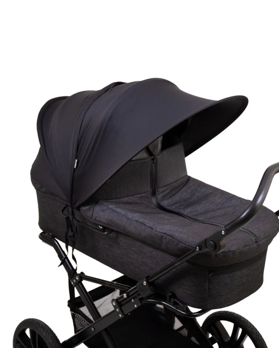 Beskyt barnet mod sol og vind med en ekstra solskærm. Den bindes på vognen, og passer både til barnevogn og klapvogne med lidt større kalecher.