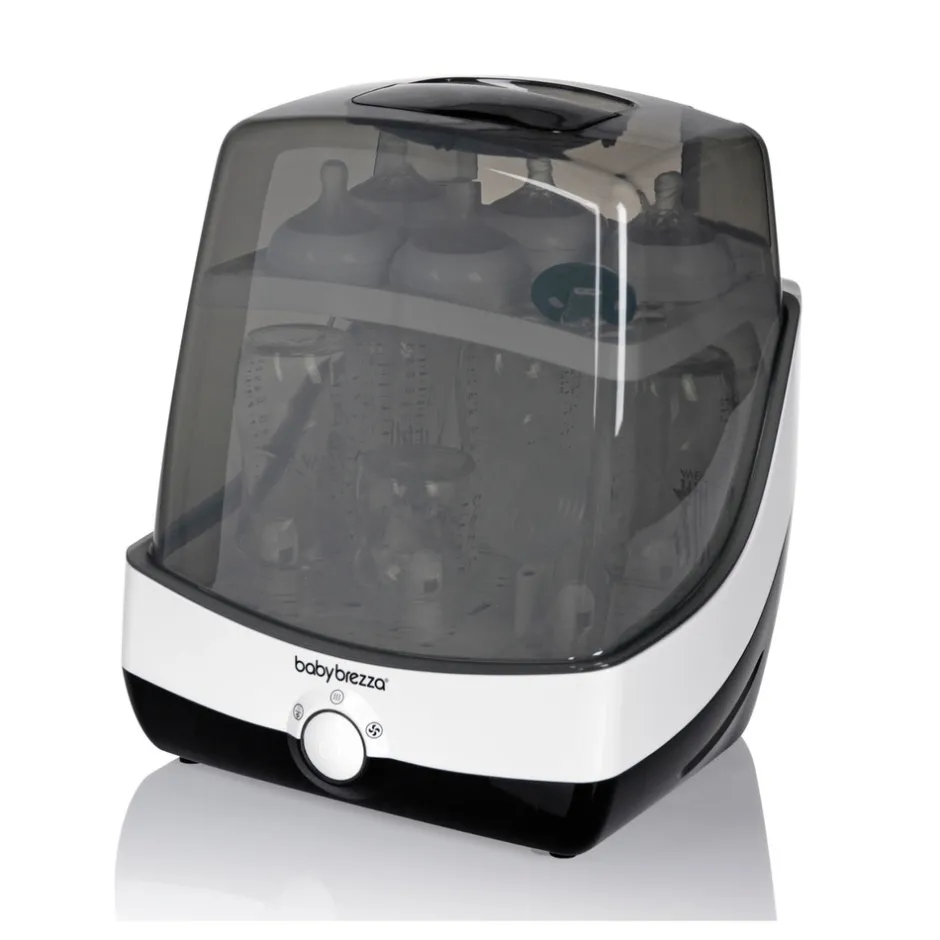 The Baby Brezza SuperFast Sterilizer Dryer er den hurtigste sterilisator og tørretumbler. På kun 10 minutter steriliserer og tørrer den automatisk flasker, pumpedele og tilbehør – den er 75% hurtigere end andre sterilisatorer og tørretumblere, så der er ingen forberedelse nødvendig. Den bruger naturlig damp til at dræbe 99,9% af bakterierne og tørrer derefter automatisk med varm luft. Produkter forbliver sterile indeni i op til 24 timer. Den kan rumme 6 flasker, pumpedele og tilbehør fra ethvert mærke og har en enkelt trykknap, der er nem at bruge og vælge mellem 4 forskellige funktioner (Sterilisator og tørretumbler, kun sterilisator, kun tørretumbler eller opbevaringsstativ). Sig farvel til kogning og sig farvel til at sterilisere og tørre SUPERHURTIGT! BPA-fri. 2 års begrænset garanti.