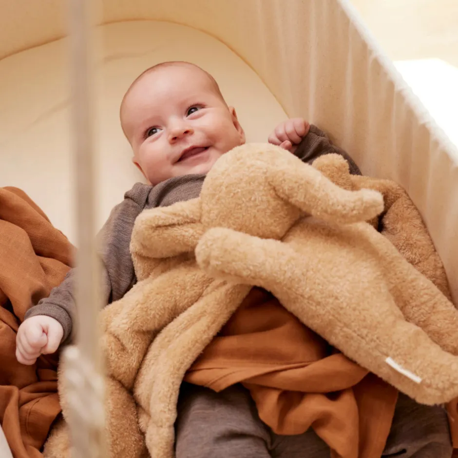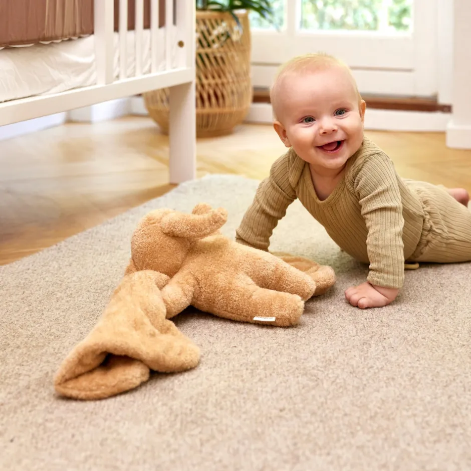 - Dansk-designet bamse, skånsom mod barnets hud og miljøvenlig.