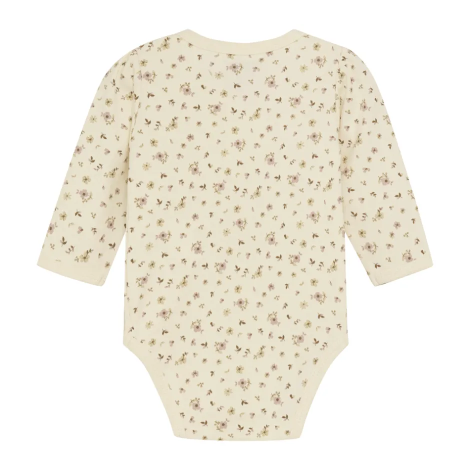 Langærmet wrap body med all-over print. Nem at tage af og på. Perfekt til babyer.