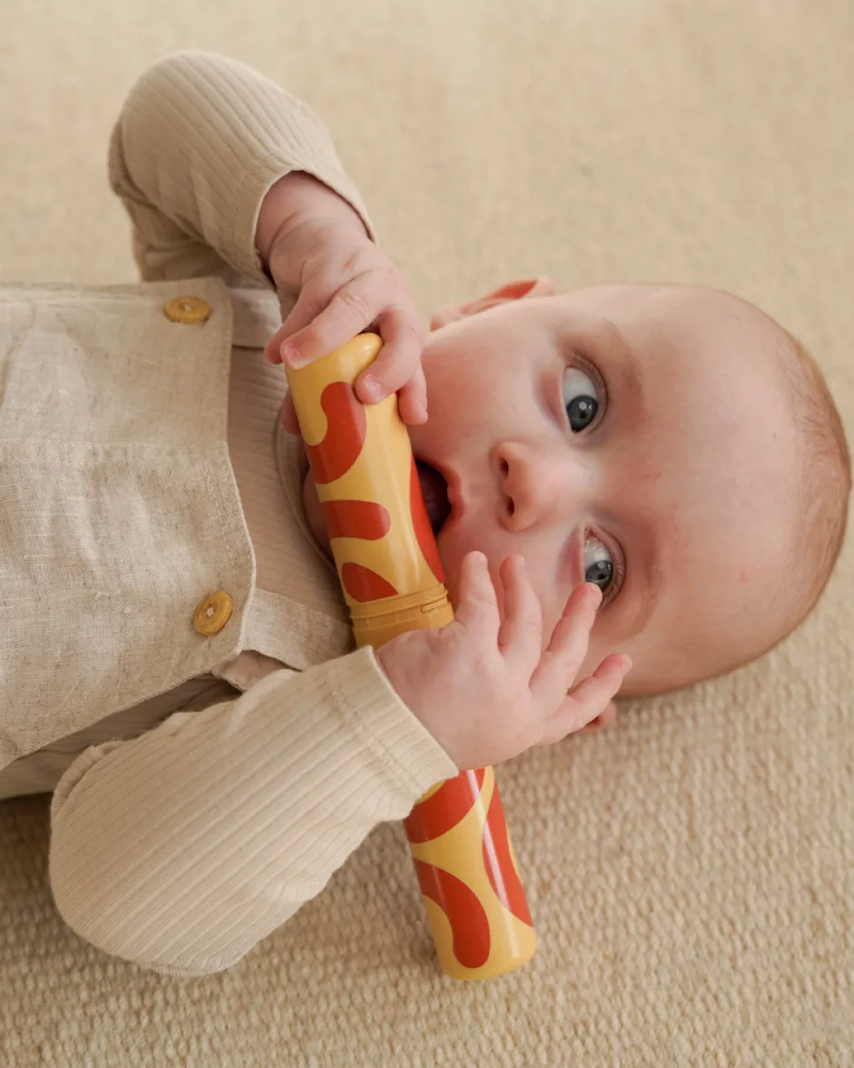 MODU baby motoriksæt — 12 sjove øvelser til de første 12 måneder af livet. Produktet er designet af eksperter i babyudvikling og indeholder en omfattende guide med billeder og vejledninger, der følger din babys vigtige motoriske milepæle; fra mavetid til kravl og videre. I pakken modtager du også specielt designet raslepinde med unikke lyde og mønstre, som giver både visuel og sanselig stimulans. Velkommen til et år fyldt med sjov, leg og udvikling!