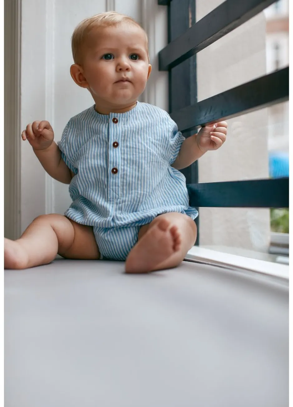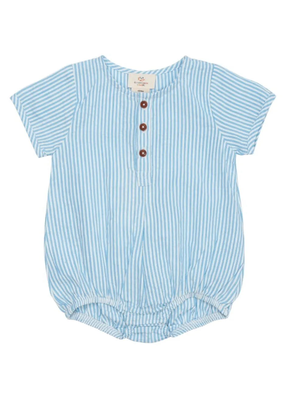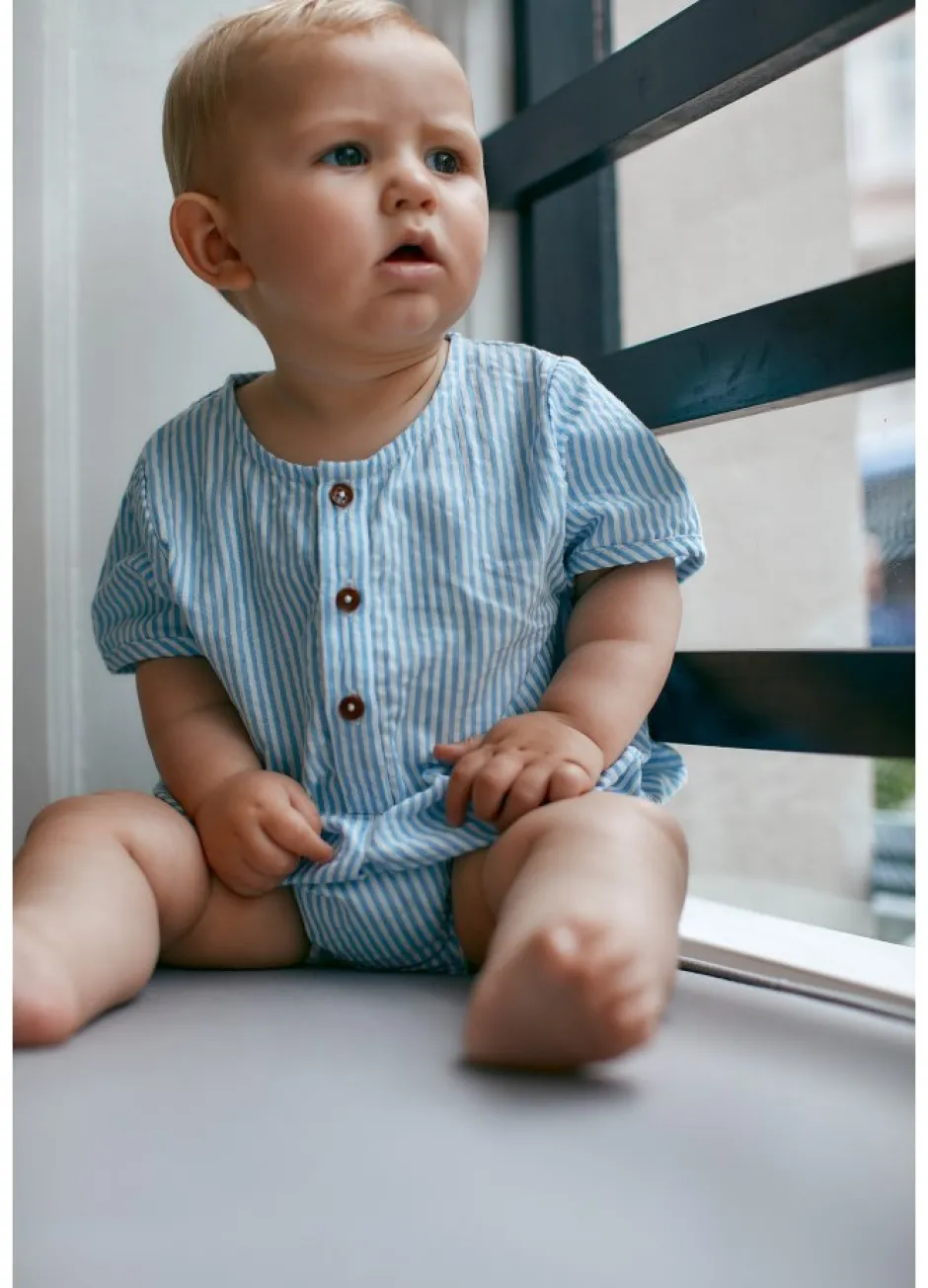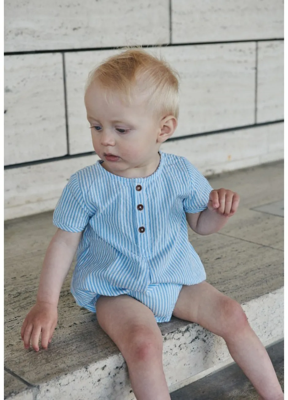 Romper i bæk og bølge med tryk knap i bund, så man let kan tilgå ble. Fremstillet af økologisk blød bomuld. GOTS Certificeret
