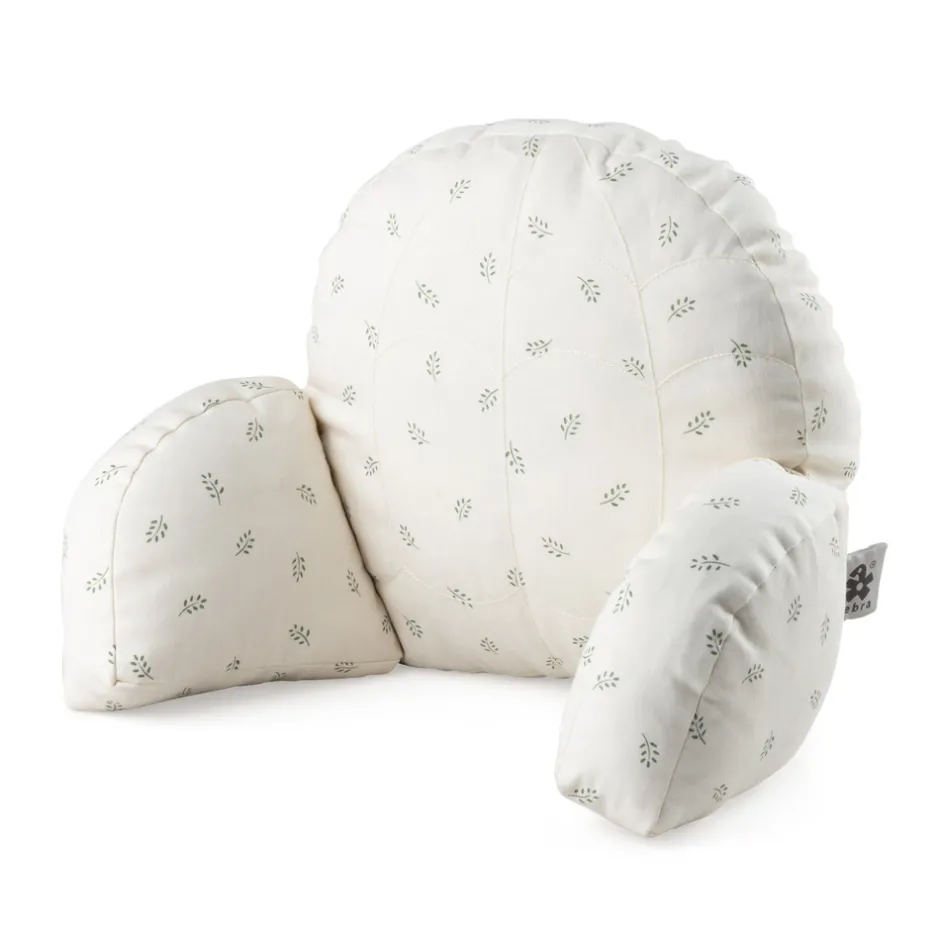 Barnevognspuden fra Sebra giver dit barn støtte og komfort, når det sidder oprejst i barnevognen og følger med på turen. De to sidestykker kan vendes afhængigt af barnets størrelse, hvilket gør det muligt at bruge barnevognspuden i længere tid. Designet, kaldet “Sophora Leaves,” er et fint bladprint på en lys beige bundfarve, der kan gå i arv mellem søskende.