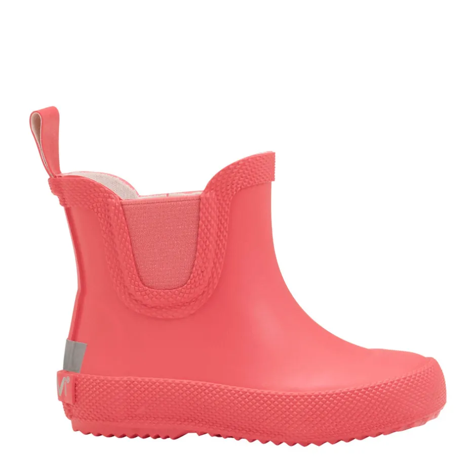 Ensfarvede korte gummistøvler med smart detalje på siden. Støvlerne er af kvalitets naturgummi og har CeLaVi reflekslogo og refleksstribe på hælen for bedre synlighed i mørket. Da gummistøvler til børn ofte bliver brugt flere timer ad gangen, er det vigtig for CeLaVi, at de er komfortable og funktionelle. Modellen er smallere i hælen, for at børnene bedre vil kunne bevæge sig, når de går, løber og leger. For at støvlen sidder optimalt på barnets fod, skal den som tommelfingerregel være fodens længde plus en finger (1-1,5 cm), så der er plads til storetåen og en tyk strømpe.