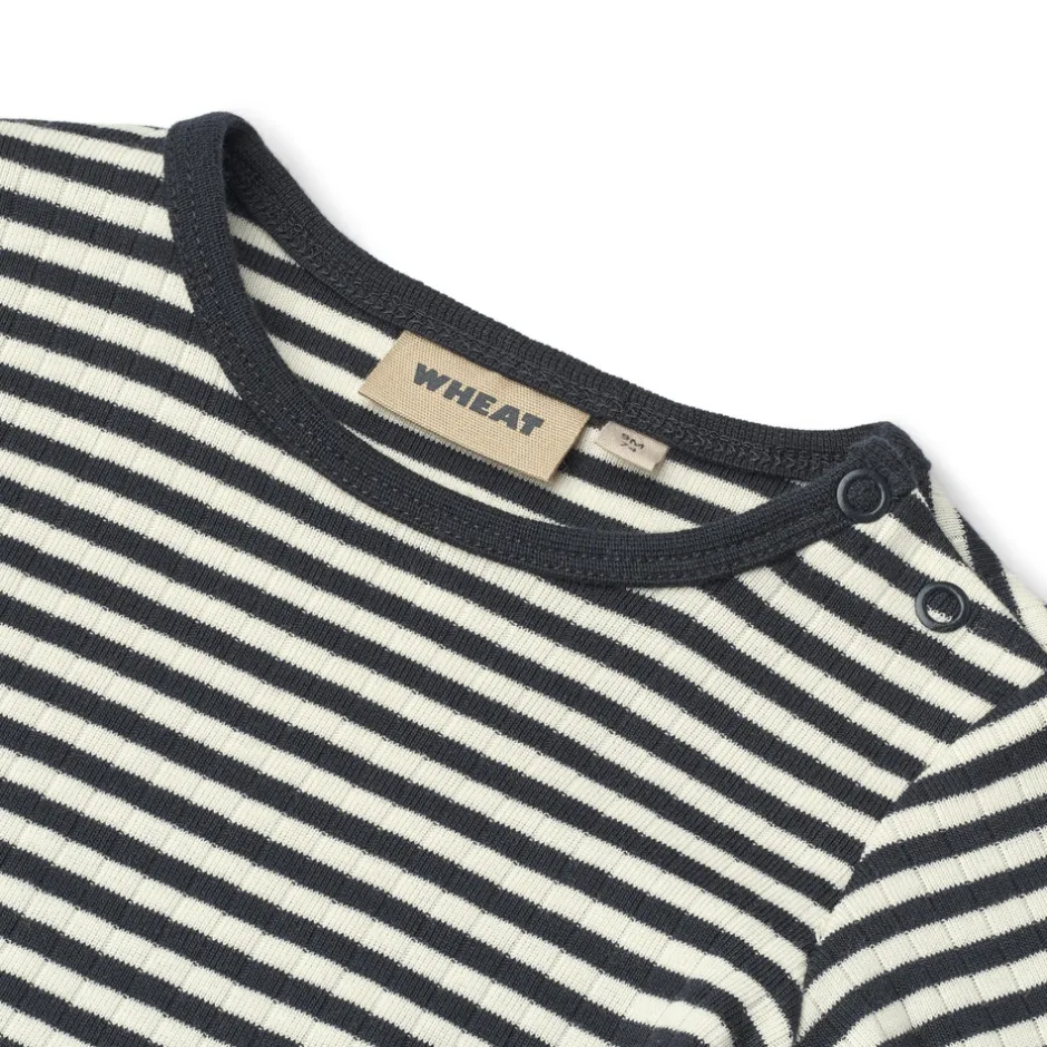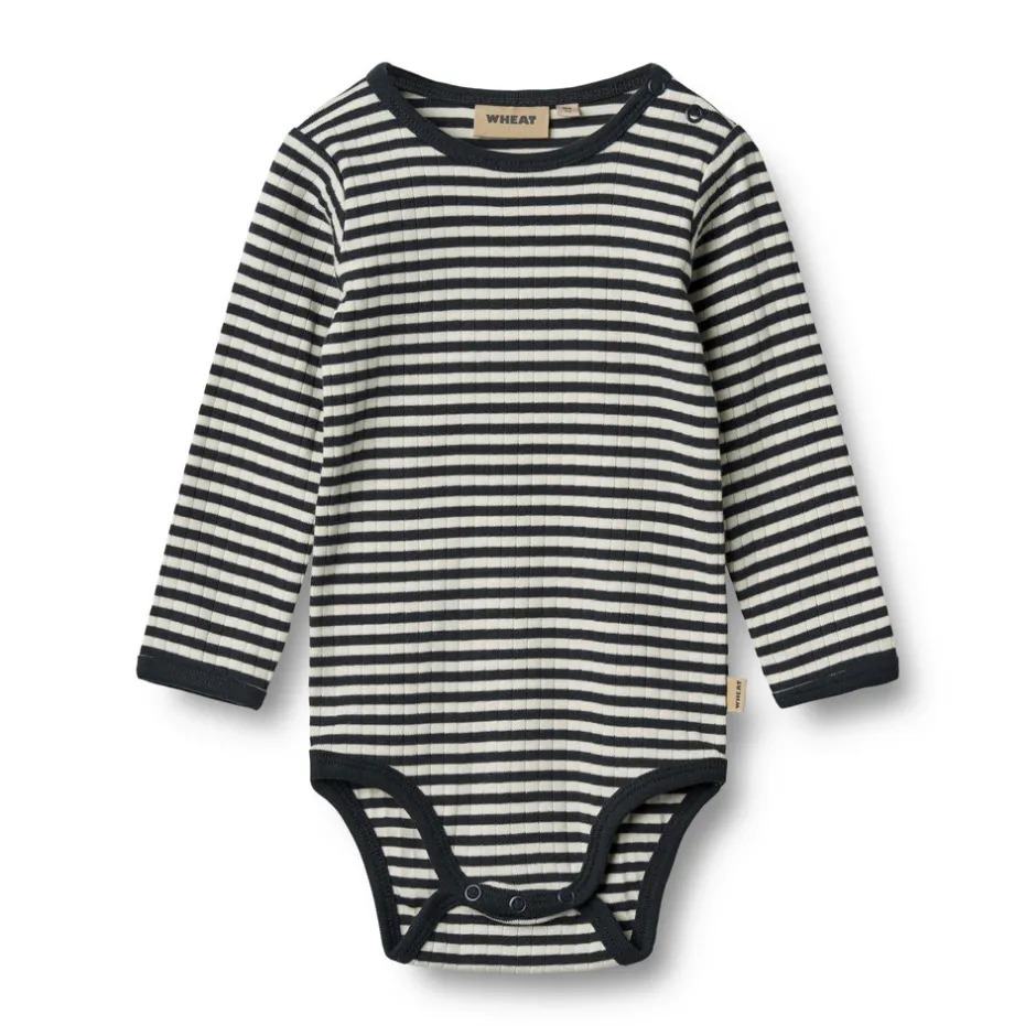 Wheats basis body er en sand klassiker i garderoben, når det kommer til småbørn. Denne body har trykknapper på den ene skulder samt i bunden for bedre komfort, når du skal klæde dit barn på. Brug bodyen som den inderste del i ethvert outfit, da den er blød at have tæt på huden. Man kan style bodyen afhængigt af vejr og årstid ved blandt andet at bruge den under et par smækbukser, leggings/bukser eller på kølige dage med en sweater/strik udover.