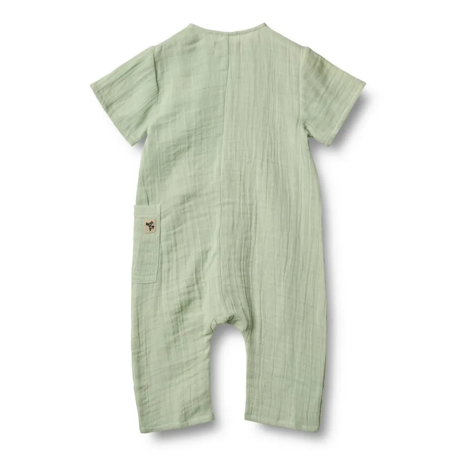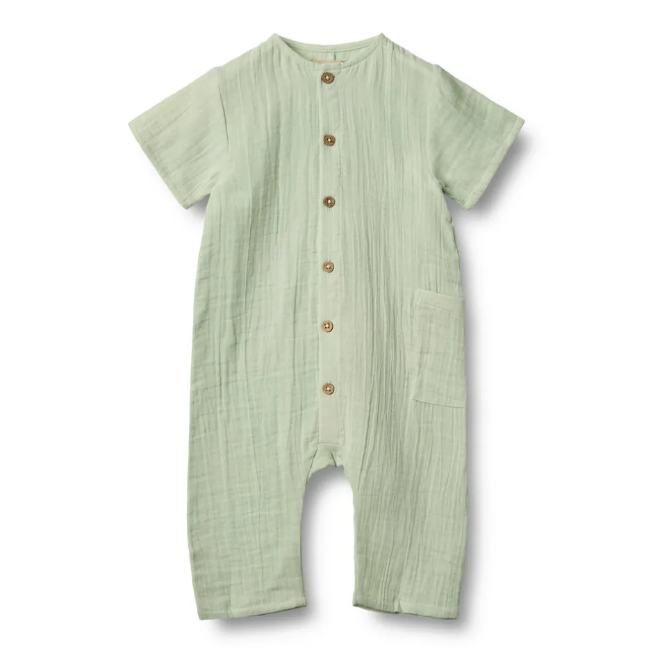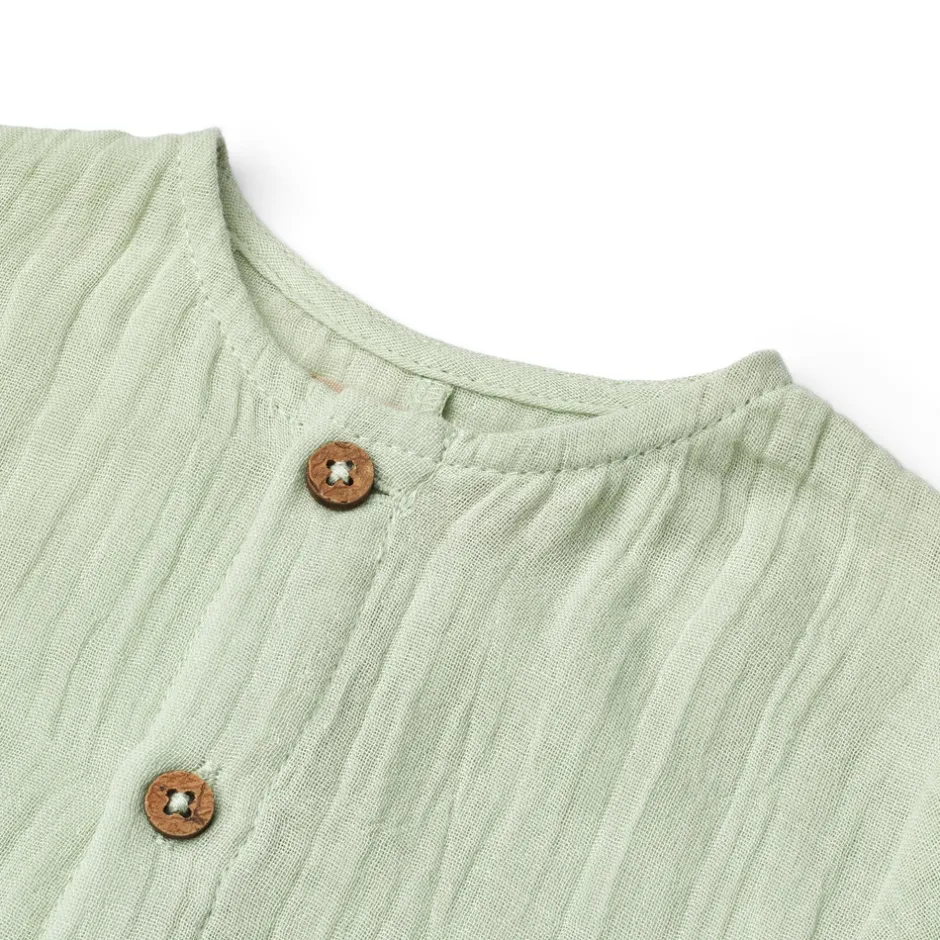 Kortærmet romper i blød økologisk bomulds gasbind til babyer.