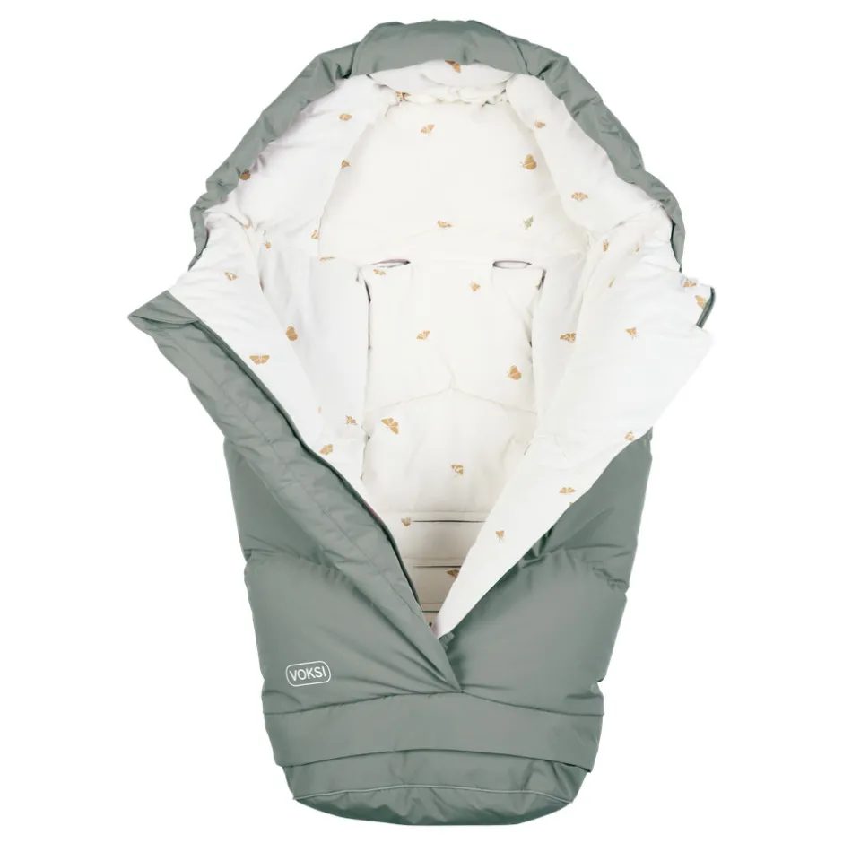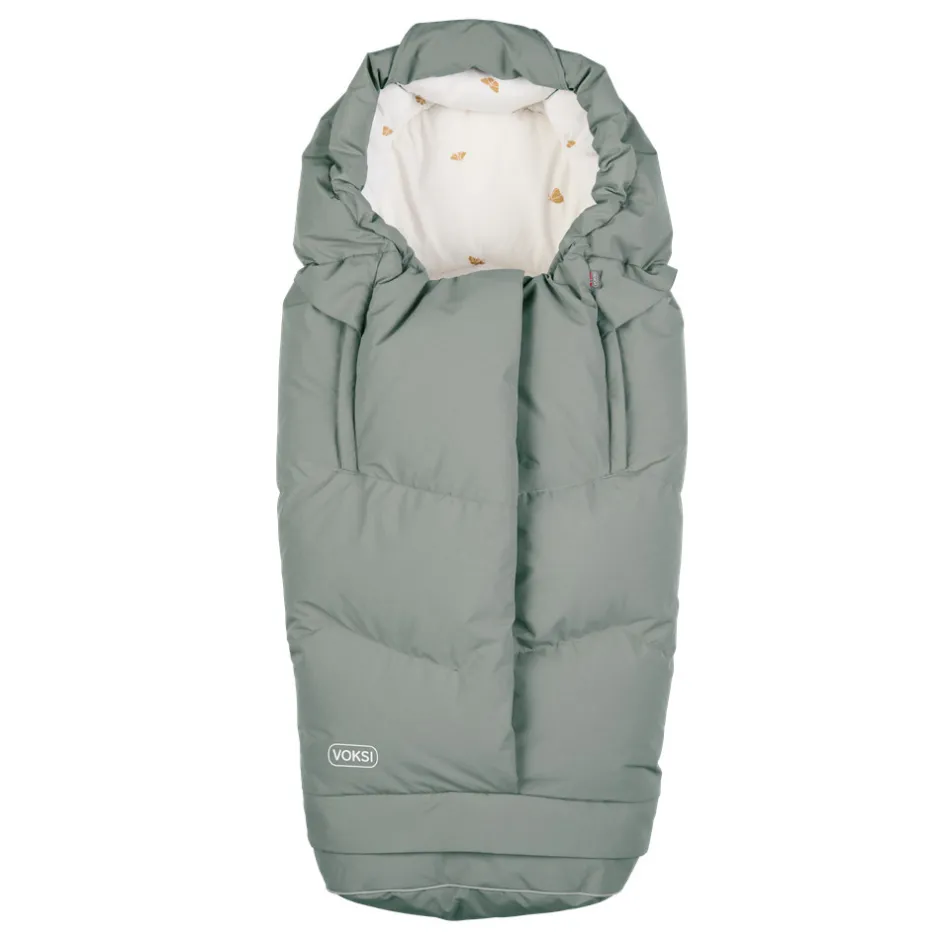 Køreposen består af naturlige og kvalitetssikre materialer som uld og dun. Der er uld i ryggen, som temperaturregulerer og sørger for at barnet holdes tørt. Fyldet i overdelen består af højkvalitetsdun og syningerne er lavet med en unik bokskonstruktion, der hindrer kulde i at slippe ind. Det er luften mellem dunfibrene, som giver maksimal isolering og holder barnet varmt i det kolde vejr. Tekstilet på indersiden er fremstillet af blød bomuld, som gør det behageligt for barnet at ligge på. Yderstoffet er vindtæt, har en vandsøjle på 8000 og er behandlet med BIONIC-FINISH®ECO. Når det regner kraftigt, anbefaler vi dog at bruge et regnslag på ydersiden. Alle materialerne i Voksi City North er OEKO-TEX®standard 100, klasse 1 certificeret, som er et kvalitetsstempel, der sikrer at ingen af materialerne i produktet indeholder skadelige kemikalier.