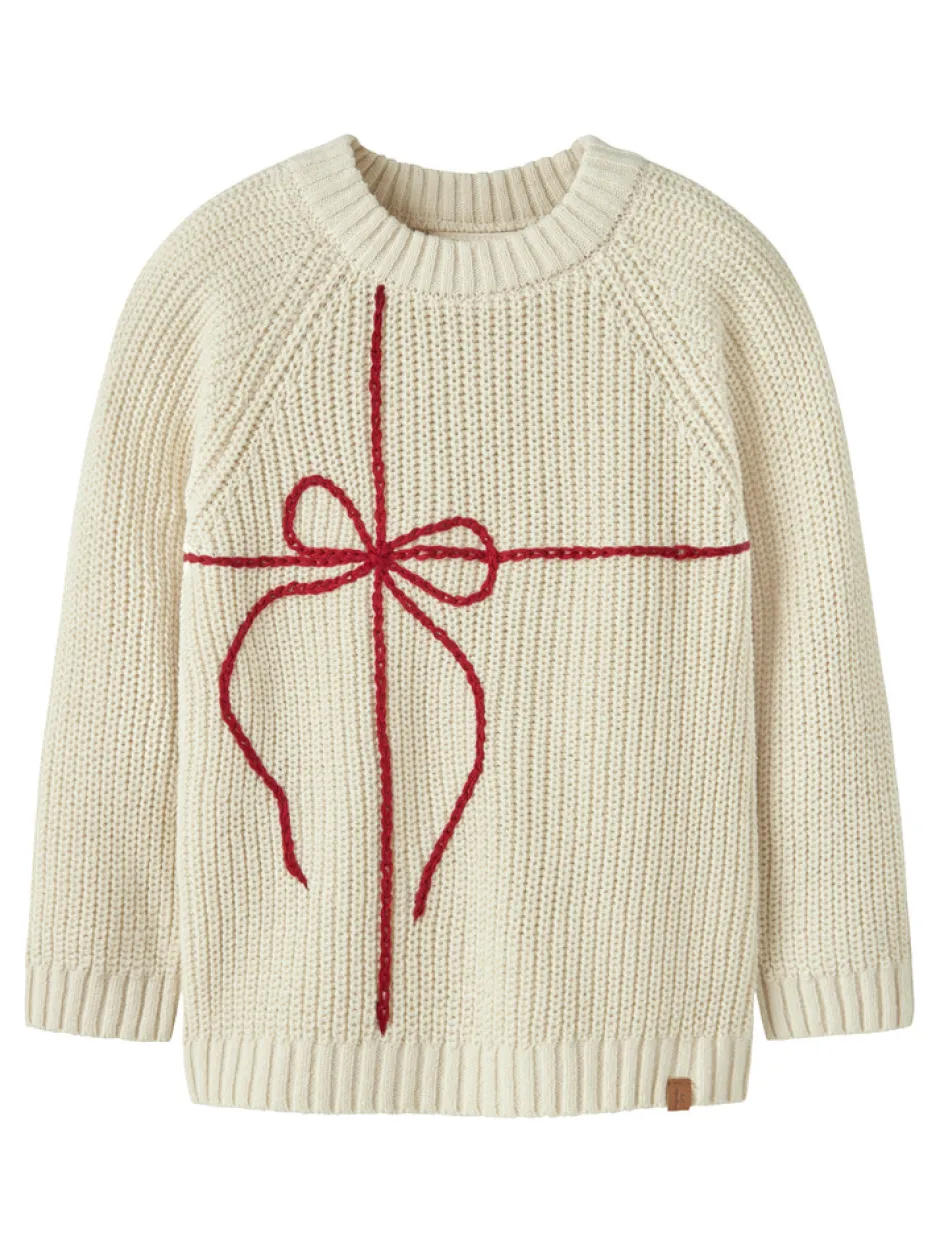 Emlen Mio Striksweater fra Lil’ Atelier er en skøn og hyggelig sweater til børn, der kombinerer komfort med et charmerende design. Sweateren er strikket i en blød og varm kvalitet, som sikrer, at dit barn holder sig dejligt tilpas på kølige dage. Det fine broderi med rød sløjfe på fronten giver et festligt og unikt udtryk, der gør sweateren oplagt til både hverdag og særlige lejligheder. Ribkanter ved hals, ærmer og bund sikrer en god pasform og ekstra komfort. Den klassiske turtledove farve passer til det meste og gør sweateren nem at style med andre favoritter i garderoben.