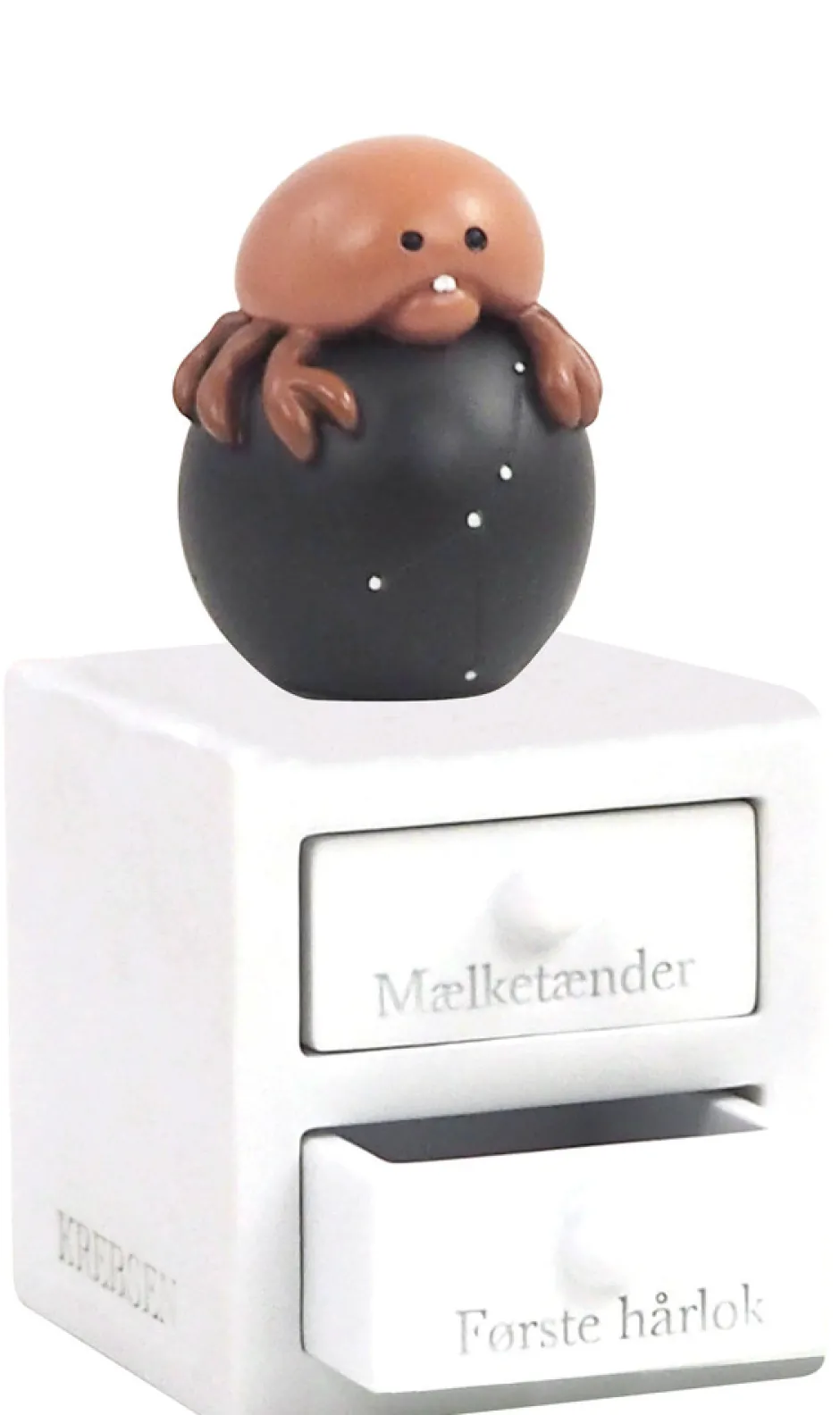 Første tand og hårlok æske med krebsen stjernetegn, med planet og stjernebillede, som lyser i mørket. Figuren har to skuffer – En til første tand og en til hårlok. Super fin dåbsgave ide. Æsken er håndmalet så der kan være variationer.