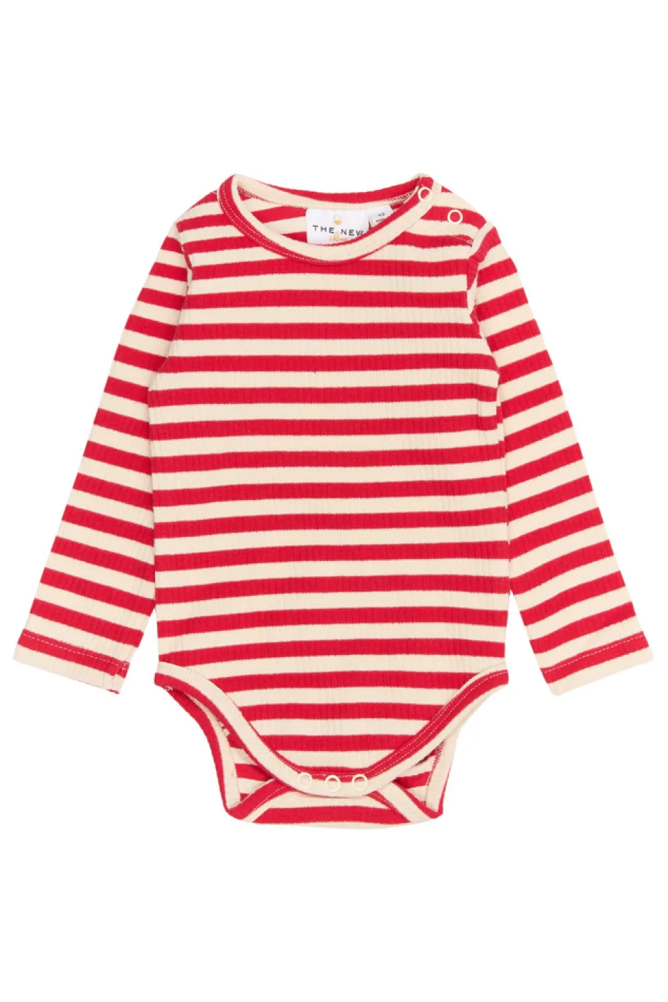 Denne langærmede body fra THE NEW Siblings er en blød og praktisk garderobe, der er vigtig for de små. Den har et klassisk stribet design og en slim pasform, hvilket gør den behagelig at have på under andet tøj. Kroppen lukkes med trykknapper ved skulder og bund, hvilket gør det nemt at tage på og skifte. Perfekt til både hverdagsbrug og leg.