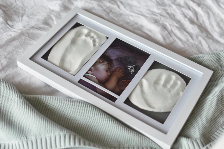 Komplet sæt med alt hvad du har brug for til at kunne lave et aftryk af barnets fod eller hånd derhjemme! Resultatet er et vedvarende og smukt minde, perfekt til dit eget hjem eller som gave.