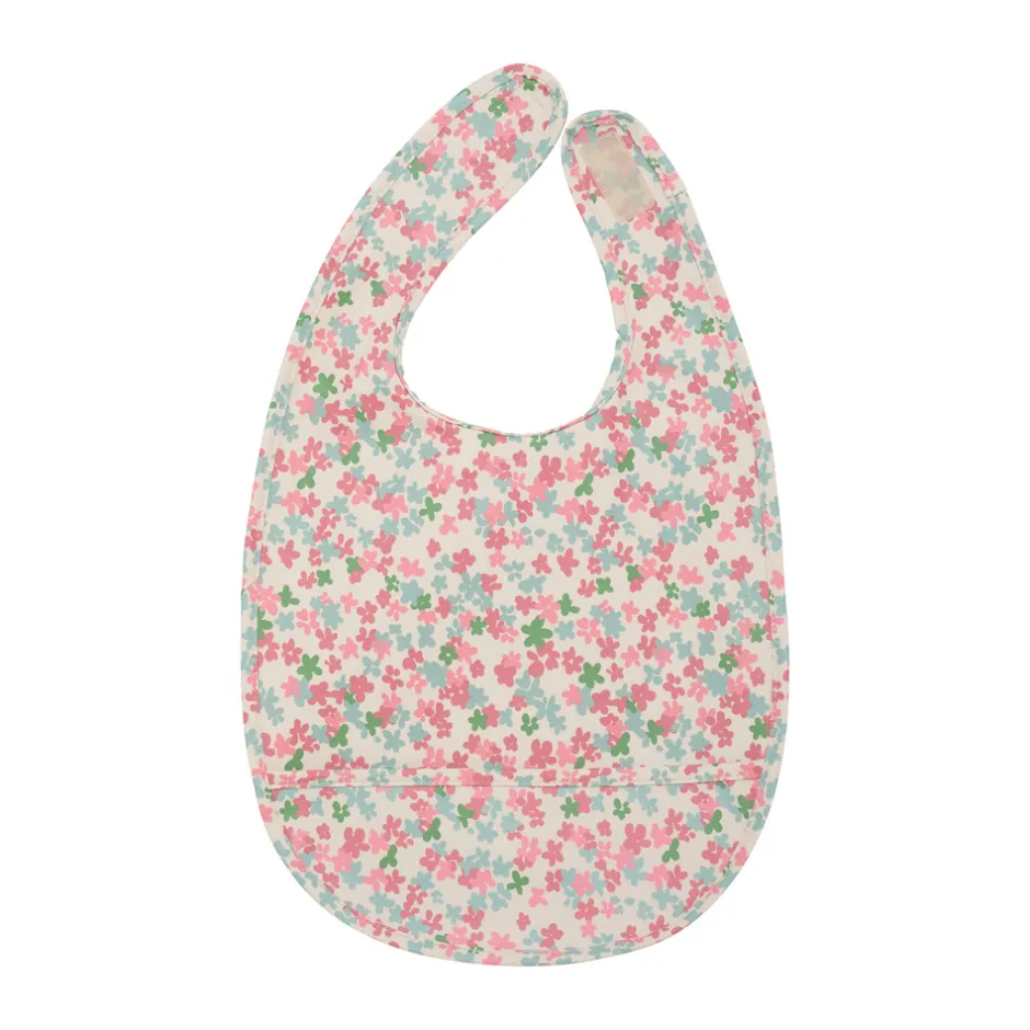 Hagesmæk i recycled polyester. Hagesmækken lukkes med Velcro i nakken. Med all-over-print. Foran har den en praktisk lomme, som fanger spild. Certificeret i hht. GRS CERES-0366.