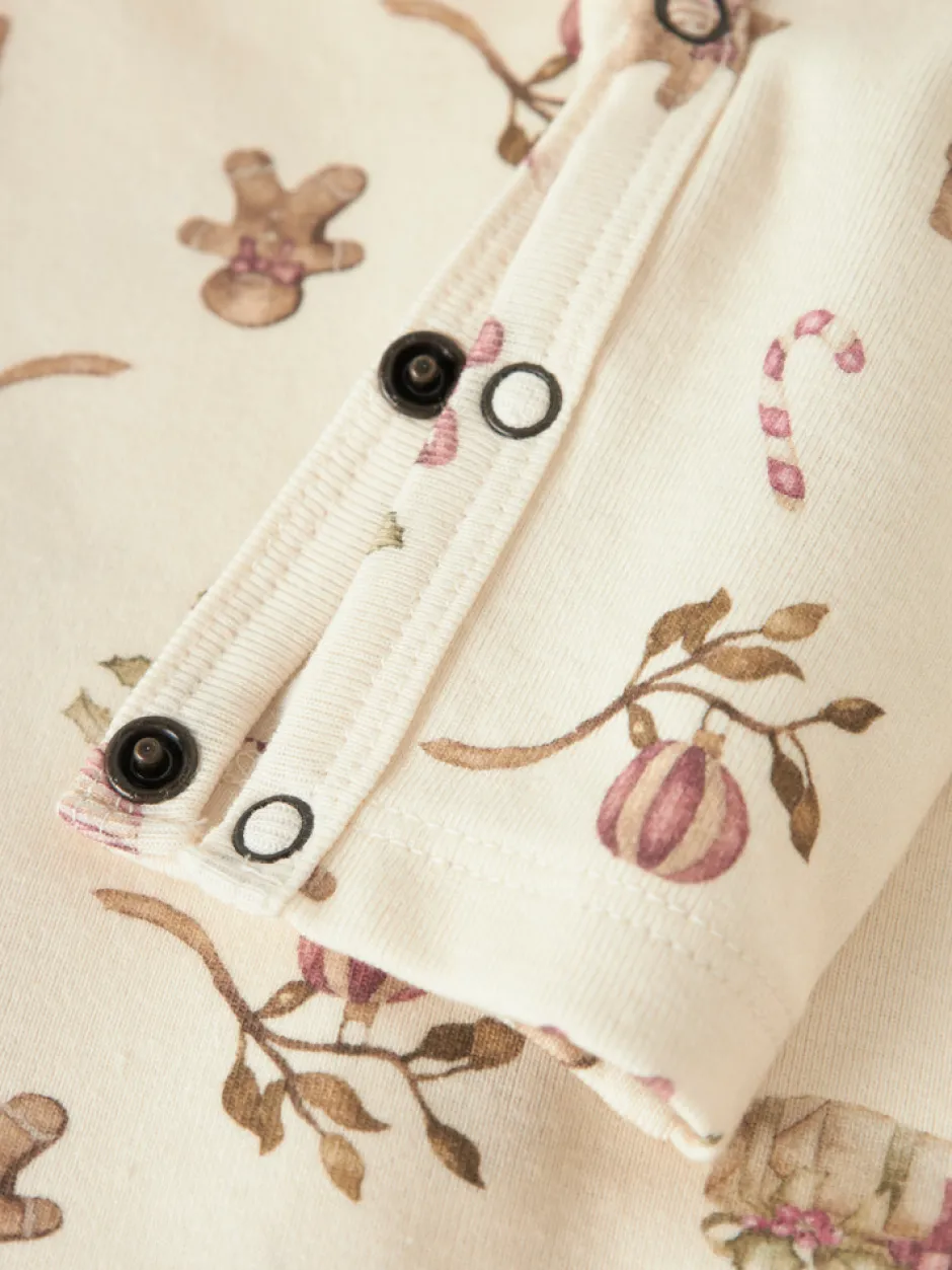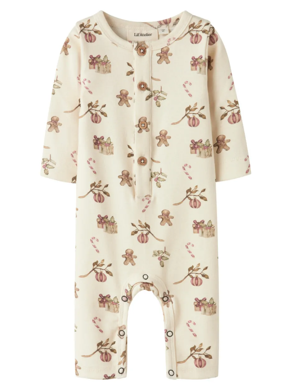 Layo Gip Heldragt fra Lil’ Atelier er en skøn og blød heldragt, der kombinerer komfort med et charmerende design. Dragten har et hyggeligt print med små julemotiver, som gør den perfekt til vinterens hyggestunder. Den er udstyret med knapper foran, så det er nemt at tage dragten af og på, og trykknapper ved benene gør bleskift hurtigt og enkelt. Stoffet er blødt og behageligt mod barnets hud, og den rummelige pasform sikrer, at dit barn kan bevæge sig frit. Heldragten er ideel både som nattøj og til afslappede dage hjemme, og den fine farve Turtledove passer til enhver garderobe.