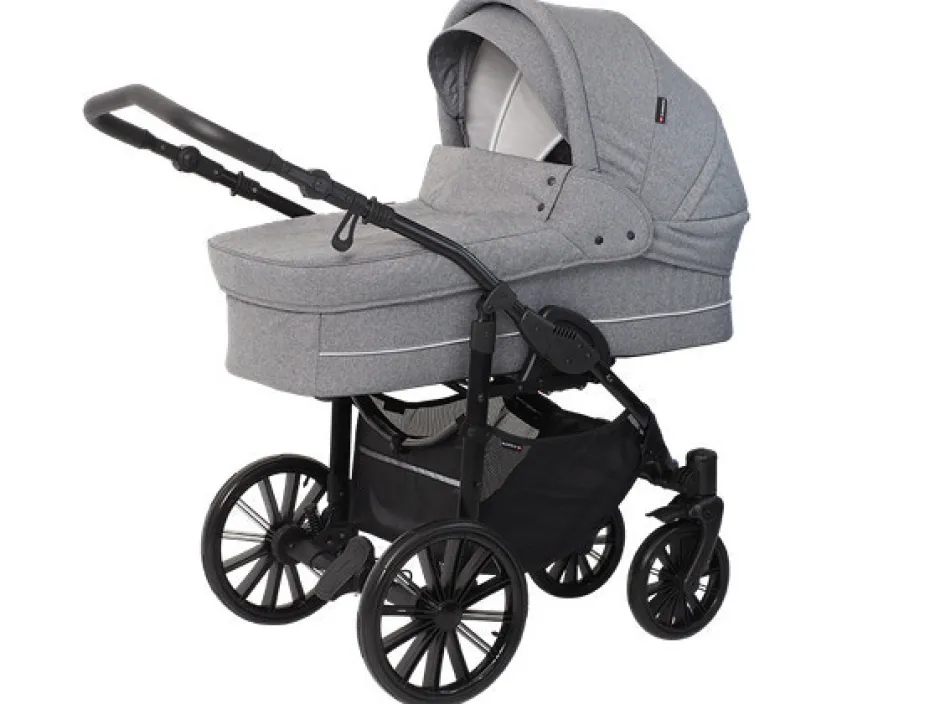 vognen stabil, men stadigvæk let. Styret kan justeres i højden (94-118 cm.), så det er nemt at tilpasse, også er der monteret eco-læder for ét godt greb. Der er en stor og praktisk indkøbskurv under vognen. Når slettet er klappet sammen måler det L: 90 H: 32 B: 61 (uden baghjul) og L: 97 H: 34 B: 64 (med baghjul). Vognen har en total vægt på 16,7 kg, testet og opfylder alle krav i DS/EN 1888:2018-1 og alle tekstiler på denne vogn er Oeko-Tex® 100 standard.
