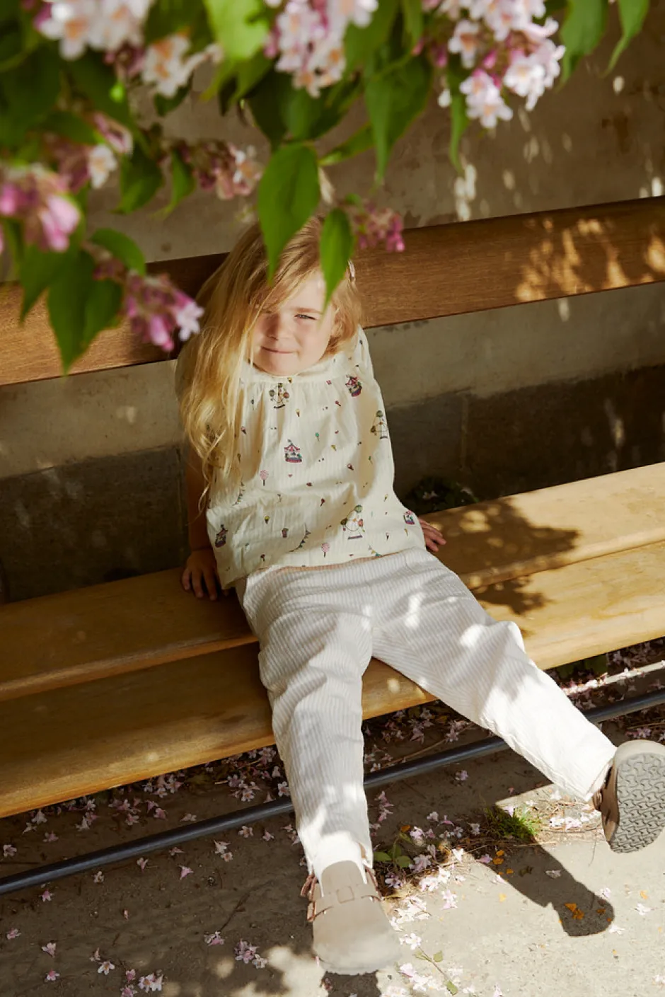Denne bløde, lette bluse har et legende print og en klassisk krave, perfekt til enhver lejlighed. 100% Øko bomuld
