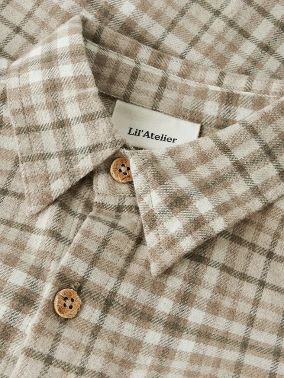 Rebel Skjorte i farven Sepia Tint fra Lil’ Atelier er et skønt valg til garderoben, hvor både komfort og stil er i fokus. Skjorten har et klassisk ternet mønster i afdæmpede nuancer, der passer til enhver anledning. Den bløde kvalitet og den behagelige pasform gør den ideel til både leg og pæne stunder. Med fine træknapper og en praktisk brystlomme får du et tidløst look, der kan styles med både bukser og shorts. Skjorten er nem at tage af og på, og den kan bruges alene eller som let overtøj over en t-shirt. Perfekt til børn, der ønsker at være både smarte og komfortable.