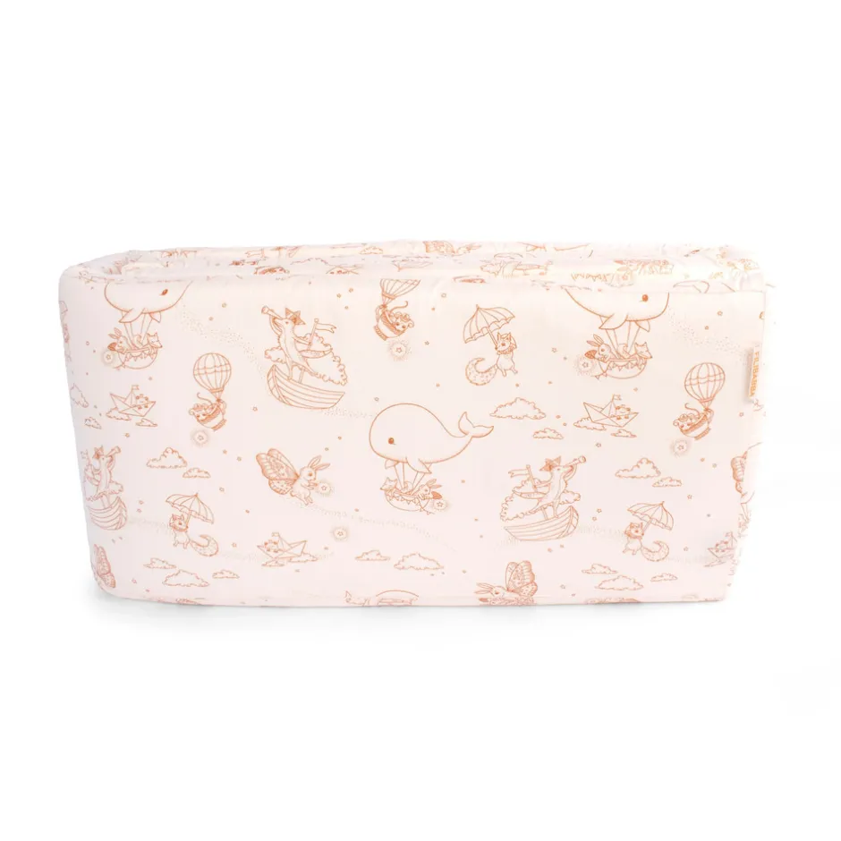 Forældre bruger meget tid på at hjælpe vores kære små med at falde i søvn, og findes der egentlig en bedre måde at slutte dagen på end at blive puttet ned i små glimt af glæde med et kys? Sengerand er designet til at skabe en hyggelig stemning i enhver krybbe og tremmeseng. Hvis din seng er mindre, skal du blot lægge sengerandens ender over hinanden. Den 4 cm tykke polyesterskumkerne hjælper sengeranden med at stå oprejst, så du ikke skal fastgøre den til sengen med f.eks. bånd. Derudover sikrer den ekstra tykke kvalitet, at din baby ikke slår hovedet ind i sengens hårde tremmer. Den integrerede lynlåsfunktion hjælper dig med at tage betrækket af, så du kan vaske det efter behov. Husk at trække betrækket i form og putte det direkte på skumkernen efter i vask. Lad betrækket tørre på sengeranden for at mindske risikoen for, at det krymper.