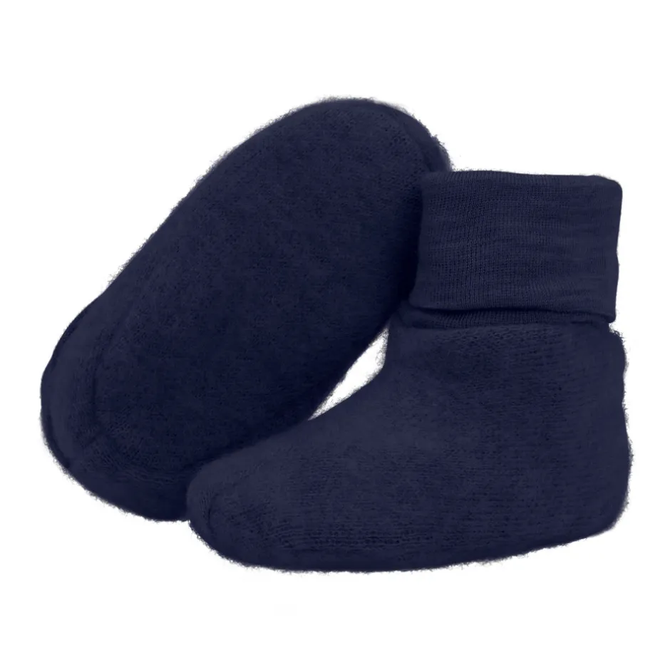 Bløde uldfutter fra CELAVI – lavet i ensfarvet, ekstra blød merinould, som holder små fødder varme og komfortable. Futterne har en ribkant ved anklerne, der sikrer en god pasform og hjælper med at holde dem på plads.