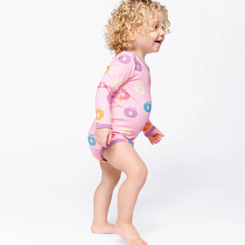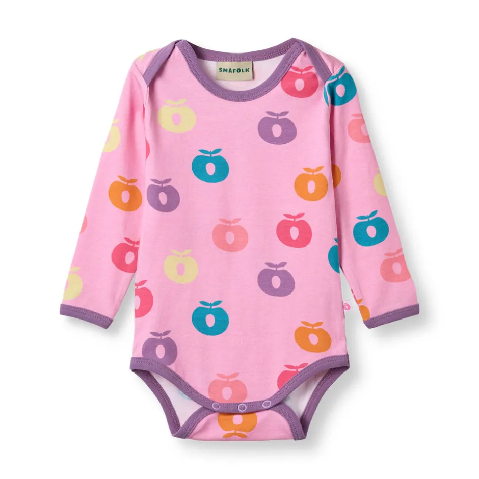 Glæd dig over vores farverige æbleprint, med vores æblelogo for at tilføje sjov til ethvert outfit. Småfolks print er tegnet med fokus på glade farver, detaljer og historier. Vores bodyer er en god måde at tilføje personlighed til dit barns garderobe, samtidig med at dit barn kan føle sig komfortabel hele dagen.
