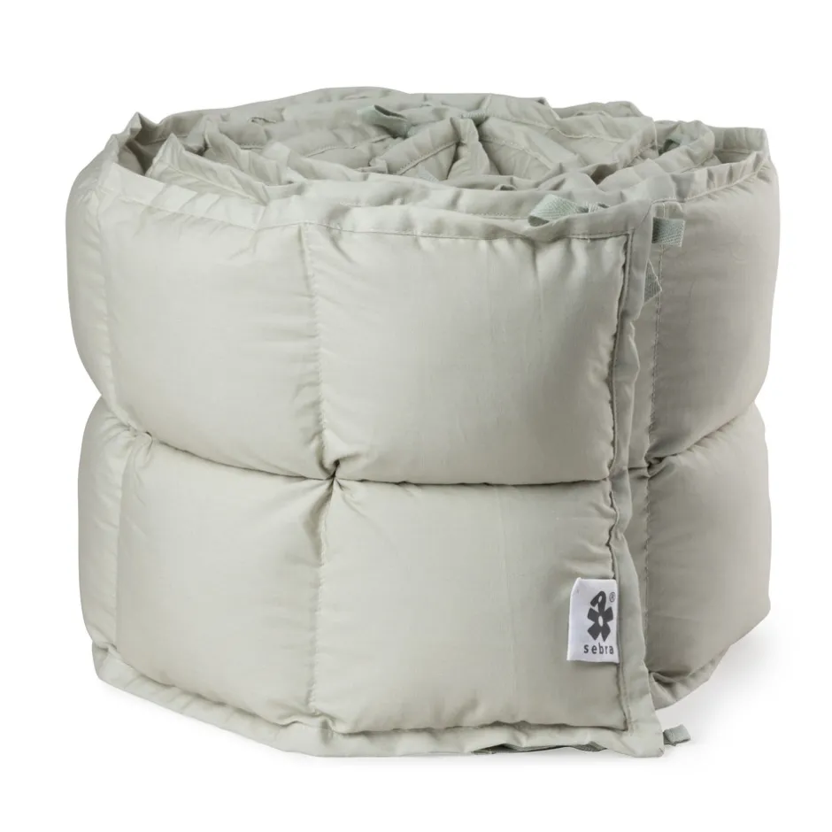Sengeranden er godkendt og testet for åndbarhed.Sengeranden må kun bruges i barnesengens øverste position.Bindebåndene skal bindes og justeres med en knude på ydersiden af barnesengen.Af sikkerhedsmæssige årsager må der ikke laves en løkke.Sengeranden skal fastgøres med bundne knuder. I tilfælde, hvor bindebåndene i bunden af sengeranden ikke bliver brugt, skal disse klippes helt af således at babyen ikke kan komme i kontakt med dem.Funktionelle snore må ikke klippes af på grund af risikoen for optrevling.Stop med at bruge sengeranden ved de første tegn på skade.Anbefalet alder: 0-6 måneder.Sengeranden er testet og godkendt i henhold til EN 16780:2018 Tekstile børneomsorgsprodukter.