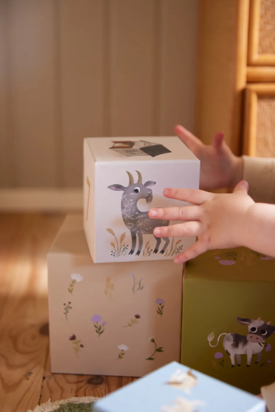 Med vores stableklodser lærer dit barn at tælle til ti og lærer bondegårdsdyrene at kende på samme tid! Stableklodserne styrker dit barns fin- og grovmotorik såvel som dets hånd-øje-koordination og problemløsningsevner. De farverige håndtegnede illustrationer vil helt sikkert skabe glæde og nysgerrighed omkring bondegården og naturen.
